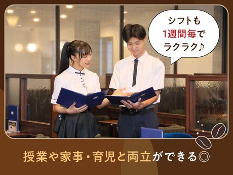 勤務時間 | シフト制 勤務時間 ・勤務曜日:月・火・水・木・金・土・日・祝 ・勤務時間: [1] 07:30~22:00 ★週2日~・1日4時間~OK ★モーニングタイムは特に大歓迎中! ※土日祝いずれかに出勤可能な方の募集となります - ◇◆ スタッフの働き方一例 ◆◇ < フリーターStaff >週4~6日、フルタイム勤務。旅行などでしっかり休みを取ることも◎ < 学生Staff >授業やサークルの予定に合わせて曜日ごとに勤務時間を変えています! < 主婦Staff >家事の合間のスキマ時間にお仕事◎ 短時間での勤務もOK♪ - |