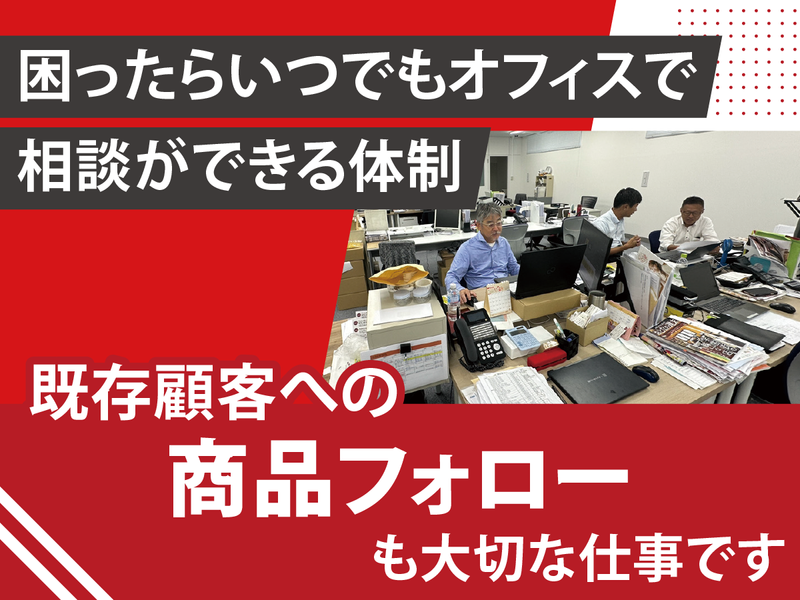 職場環境・雰囲気 | 職場環境 営業スタッフは現在5名。 ・ベテランの先輩 ・業界未経験から入社した中途社員 ・第二新卒で入社した若手社員 困ったときは気軽に相談できる環境だから、未経験でものびのび成長できる! 喫煙所:喫煙所あり(屋外) |