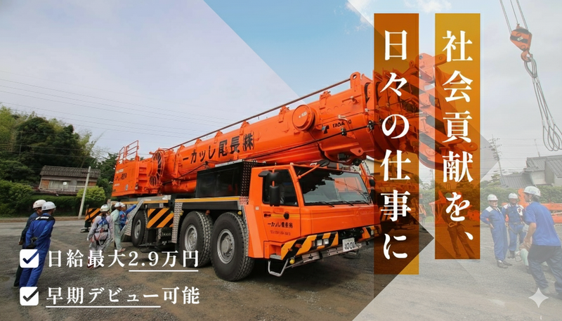 職種/仕事内容 | 仕事内容 ━━━━━━━━━━━━━━━━━ \\ 求人のポイント // ✅ 日給最大29,000円も可能 各種手当込みで高収入を実現 ✅ 早期から大型クレーンに挑戦 年功序列なし。意欲を正当に評価 ✅ 研修1〜3か月で着実デビュー 積み込み補助から段階的に習得 ━━━━━━━━━━━━━━━━━ 【仕事内容】 移動式クレーンを操作し、 資材・機材の吊り上げを行います。 ● 建築・土木・プラント現場 ● クレーン操作・運搬業務 ● 合図者との連携作業 【担当する現場について】 現場は建築・土木が中心です。 幅広い経験を積めます。 建築工事約5割/土木工事約3割/プラント他約2割 ※県内有数の大規模現場 ※小規模現場は比較的少なめ \未経験スタートでも安心/ 最初は操作以外から開始。 安全第一で育成します。 ● 積み込み・段取り補助 ● 現場ルール・合図の習得 ● 操作は段階的にお任せ |