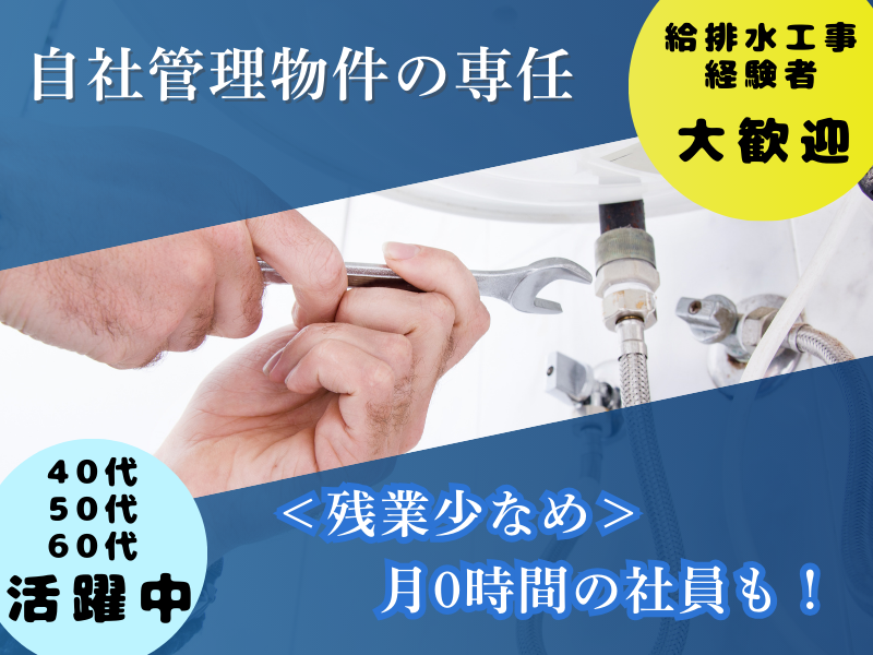職種/仕事内容 | 仕事内容 ―――――――――――――――― 設備業界の知識や経験を活かして、自分のペースで無理なく仕事ができる環境へ。 ―――――――――――――――― 今回の募集では【設備業界経験での営業やお客様対応】の経験があればOK!比較的に余裕のあるスケジュールで動くことができるため、施工管理や進行管理としてキャリアアップしたい方が始めやすい環境です。 当社は自社管理マンションの修理・改築工事を行っているため、納期調整の融通がききます◎他の管理会社と競うこともありませんので、ゆとりを持って業務に専念できます! ー この求人のポイント! *<残業少なめ>月0時間の社員も! *<経験者歓迎>50代、60代活躍中! *<土日休み>完全週休2日制! *<長期安定>創業60年の安定企業! *<転勤なし>地元で長く働ける! //////////////// <電話でのお問い合わせ> 06-6308-1385(採用担当)まで //////////////// 【仕事内容】 マンション、ビル、ホテル等の大型施設など多様な建物の管理・維持を担っている当社。それら自社管理物件の中で、マンションに特化したリフォーム工事の施工管理・工事監理業務をお任せします。 特に今回は、給排水衛生設備を担当いただける方を探しています。 ~具体的には~ *見積作成 *発注対応 *予算管理 *工事の品質管理・安全管理 *現場指示・進捗確認 など ※工事のない日は事務所にて事務作業(見積作成他)を行います。 ~入社後3カ月までの流れ~ 入社後は先輩社員の現場補助から始めていきます。まずは当社での業務に慣れていただき、徐々にできることからお任せしていきます!わからないことは何でも聞ける環境なので、遠慮なく先輩方を頼ってくださいね。 //////////////// 【納期の調整やスケジュール管理がしやすい】 冒頭でもお伝えしたように、当社は自社が管理している物件の施工となるため、ある程度スケジュール調整がしやすく、管理業務に集中しながら自分のペースで仕事ができます。また、1工事につき発注する会社が多数になることもなく、スムーズに業務を進められます! 【無理に新規営業をかける必要ナシ】 担当いただく業務は主に現場の管理とお客様への対応がメインとなるため、「数字の為にガツガツ仕事を取りにいかなくては…」という心配はありません◎業務量は安定しているので、多くの業者や職人との細やかなコミュニケーションを大切にしつつ、案件を成功に導いてください。 【私生活にもゆとりを】 社員の働く環境づくりには特に力を入れており、残業は多くて月平均20時間ほどで中には残業全くナシの人もいるほど。休みは基本土・日曜日、年間休日124日以上など業界内でも高水準の働きやすい環境が自慢です。 ー 当社について。 分譲マンションをはじめ、当社管理物件は景気に左右されにくく、さらに誠実・確実な管理体制がお客様に高く評価され、順調に業績を伸ばしてきました。中途入社の社員も多数在籍しており、経験やこれまでのやり方を活かして働きやすい環境です。 専門性の高い知識・スキルを磨き当社で長い安定を手に入れてみませんか? 【こういった経験が活かせます】 管工事施工管理、リフォーム工事などの担当経験、自社管理マンションのリフォームなどを管理した経験が活かせます。元請け経験者も歓迎! |