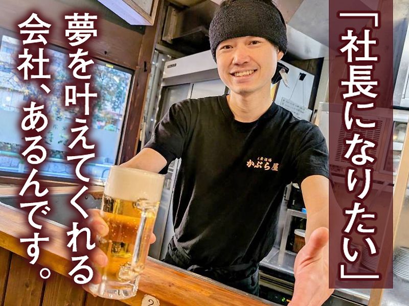 対象となる方 | 求める人材: <学歴不問> ✨独立意欲や希望のある方 ✨飲食業界でのマネジメント経験者歓迎 ✨ブランクOK 経験・スキルよりも 人柄重視の採用が当社の基本スタイルです。 ✨未経験OK ✨第二新卒も歓迎 ✨現在活躍中の仲間達の7~8割が居酒屋未経験。 カフェ、レストラン、バル、イタリアン、中華、和食などの飲食経験者を始め、営業、ドライバー、アパレルなど飲食未経験者も多数活躍中! ※未経験入社1年で店長に昇格した社員もいるなど、早期昇格が可能です! \こんな方に最適/ ✨チャンスをつかめる環境で働きたい ✨キャリアアップを目指せる環境で働きたい ✨明確な昇給や昇格制度のある会社で働きたい ✨オン・オフのメリハリのある環境で働きたい ✨安定企業で安心して働きたい <池袋4号店:岡田より> みなさん、初めまして。 私は異業種からのチャレンジでしたが、 ・成長性 ・チャンスが豊富 ・自己資金0円での独立制度 この3つに惹かれ、転職を決意しました。 しっかりとした研修制度があるので、 未経験者にも店舗運営のノウハウを いちから丁寧に学ぶことができ、スタート時から安心感がありました。 また、販促を始め運営に関して、 現場の意見を柔軟に取り入れてもらえるので、 やり甲斐も抜群です。 何よりも魅力に感じるのは、年齢や経験に関係なく、頑張るスタッフを評価し、チャンスを与えてくれる環境ですね。 「人が好き」「飲食店が好き」という方はもちろん、独立意欲のある方まで、幅広い仲間にチャンスがある環境なので、きっと楽しく働くことができると思います、 みなさん、是非一緒に「かぶら屋」を盛り上げていきましょう! |