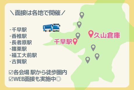 対象となる方 | 資格 \こんな方におすすめです♪/ ◎ 学歴・経験不問!未経験から始めたい方 ◎ ブランクがある方、復職したい方 ◎ しっかりと働きたい主婦(夫)さん ◎ Wワーク希望の方も大歓迎! 【未経験からスタートした方が多数活躍中!】 異業種からの転職者も多く、安心して始められます◎ 営業/飲食(カフェ・居酒屋・レストラン) 接客(ホテル・スーパー・アパレル・コンビニ・受付) 製造/警備/ドライバー/ 事務(コールセンター・データ入力)/在宅勤務 etc. 【勤務地は久山町!幅広いエリアから応募多数】 久山町を中心に、 糟屋郡エリア(粕屋町・新宮町・志免町・須恵町・宇美町・篠栗町)や、 福岡市内(博多区・東区・南区・城南区・中央区・西区・早良区) など、県内広域からご応募いただいています! マイカー通勤OK&千早駅からの無料送迎バスあり♪ 通勤手段も充実しているので、近隣エリアにお住まいの方に人気の職場です◎ ■ 入社時の丁寧なトレーニングあり ■ 作業はマニュアル完備で安心スタート 「自分にもできるかな…」そんな方も大歓迎です! |