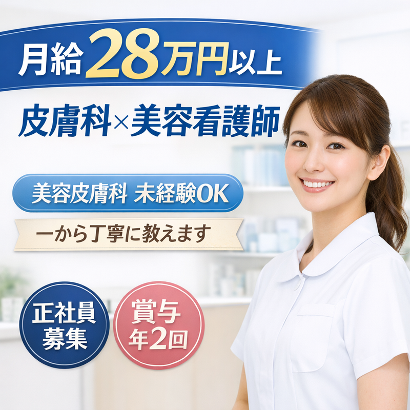 職種/仕事内容 | 仕事内容 \\ 求人のポイントはコチラ // ✅保険皮膚科+美容皮膚科のクリニック ✅勤続年数に応じた退職金制度もあり♬ ✅夏季・冬季休暇+他にも休暇制度あり ✅ノルマ無しで患者様と真摯に向き合える ✅月給28万以上+賞与年2回+昇給随時 ※本求人は「正看護師・准看護師資格」 をお持ちの方限定です ※皮膚科・美容未経験の方も歓迎 ☆.。.:*・゜☆.。.:*・゜☆.。.:*・゜☆ ⭐仕事内容  ̄ ̄ ̄ ̄ ̄ ̄ 保険皮膚科・美容皮膚科における 看護業務全般をお任せします。 ⏩保険皮膚科  ̄ ̄ ̄ ̄ ̄ ̄ ̄ ■注射・採血 ■カルテ記入 ■診療準備・診療後の片付け ■診察補助 (処置・手術の介助など) ■皮膚科処置 (軟膏処置、液体窒素によるいぼ治療など) ■診察後の説明 (外用薬の塗り方など) ⏩美容皮膚科  ̄ ̄ ̄ ̄ ̄ ̄ ̄ ■化粧品のご案内・販売 ■脱毛・レーザーなどの美容施術 ■院長の施術サポート ■美容点滴・注射 ⏩その他業務  ̄ ̄ ̄ ̄ ̄ ̄ ̄ ■施術予約の管理 ■在庫管理 ■SNS投稿 ■週報・月報の作成 看護師資格をお持ちの方が、 新しい環境で安心して力を発揮できるよう、 全員で丁寧にサポートしていきます! ━━━━━━━━━━━━━━━━ ✨日々の小さな変化の積み重ねで 患者様のキレイを支えるお仕事✨ ━━━━━━━━━━━━━━━━ ただ処置を行うだけの仕事ではなく、 肌が整い、表情が明るくなり、 少し自信を持って帰られていく――。 患者様の毎日を前向きに変える、 "幸せのお手伝い"をしませんか? ☆.。.:*・゜☆.。.:*・゜☆.。.:*・゜☆ ⭐患者様と"心から向き合える"場所  ̄ ̄ ̄ ̄ ̄ ̄ ̄ ̄ ̄ ̄ ̄ ̄ ̄ ̄ ̄ ̄ 日々の忙しさの中で、 気づけば対応が流れ作業になってしまう。 多くの看護師が、一度は感じたことのある 葛藤かもしれません。 とみ皮膚科クリニックは、 そんな“原点の想い”を大切にできる場所✨ 私たちが向き合うのは、 肌の症状だけではありません。 不安や戸惑いを抱えて来院される 患者さんの「気持ち」そのものです。 真摯で丁寧な対応を重ね、 安心して通い続けていただくことが、 私たちが目指す医療のカタチです。 ☆.。.:*・゜☆.。.:*・゜☆.。.:*・゜☆ ⭐安定収入と将来設計を両立!  ̄ ̄ ̄ ̄ ̄ ̄ ̄ ̄ ̄ ̄ ̄ ̄ ̄ ̄ 安定した月給に加え、 賞与年2回・随時昇給といった 継続的な評価制度を整えています! 日々の取り組みや姿勢が正当に反映され、 長く働くほど安心が積み重なる環境です✊ また、退職金制度も完備しており、 目の前の働きやすさだけでなく、 将来まで見据えて勤務できるのも特徴◎ 腰を据え看護に向き合いたい方にとって、 安定とやりがいを両立できます✨ ☆.。.:*・゜☆.。.:*・゜☆.。.:*・゜☆ |