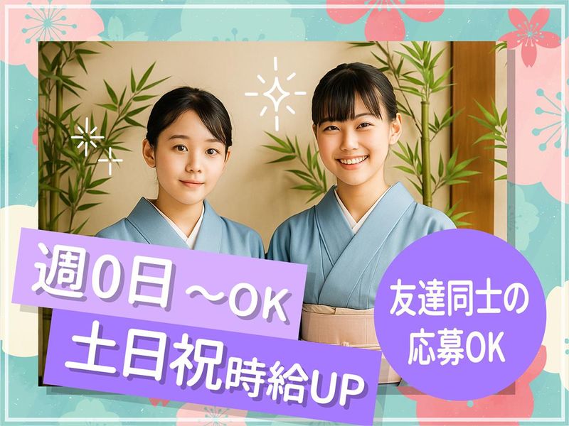 職場環境・雰囲気 | 職場環境 ✨こんな方にピッタリの職場環境✨ ❏落ち着いた雰囲気のお店で働きたい! ❏着物が好きだから 自分で着られるようになりたい! ❏綺麗な所作を身につけたい! …など♪長期で働くスタッフが 多数在籍しており、定着率も抜群です! |