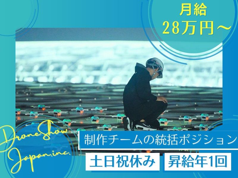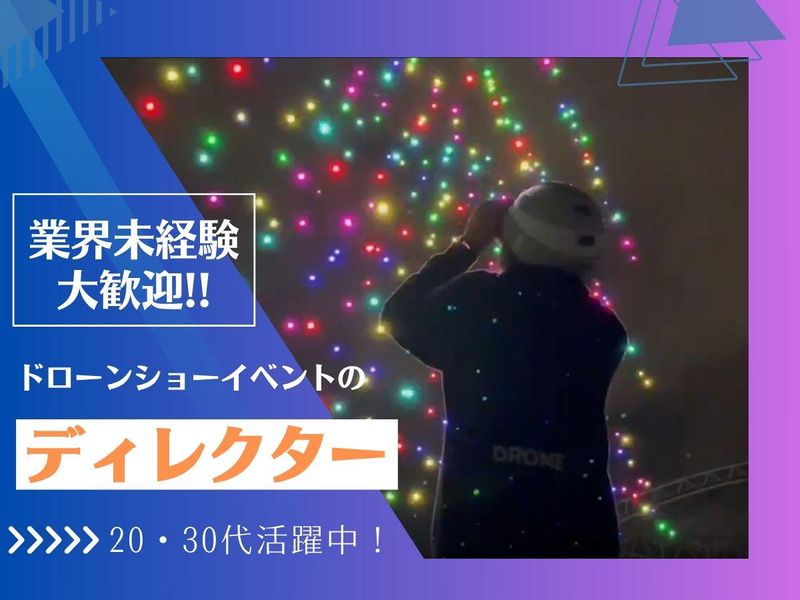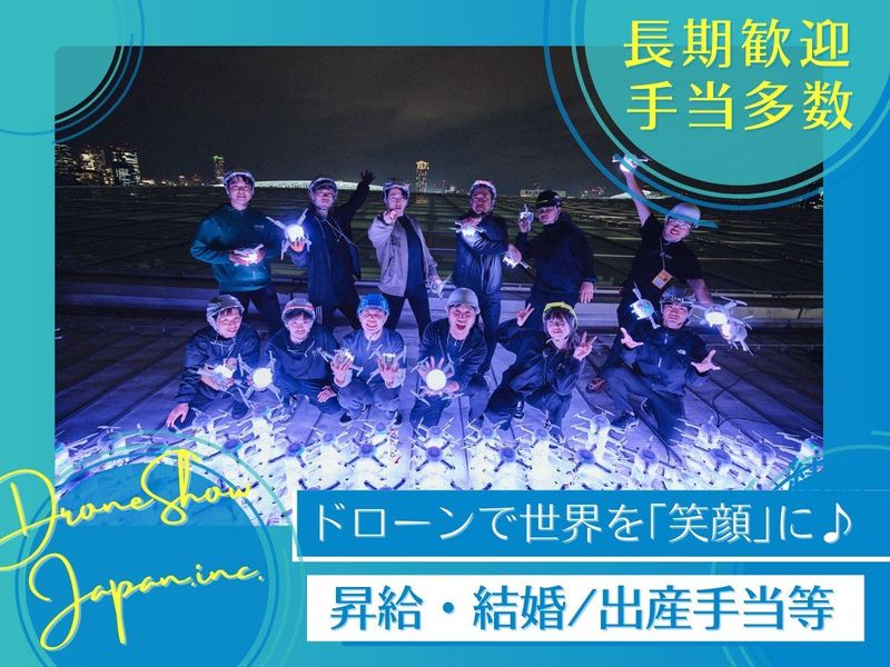 待遇・福利厚生 | 【保険制度】 雇用保険、労災保険、健康保険、厚生年金 【福利厚生】 待遇・福利厚生 【福利厚生】 ✅交通費支給(規定/月上限3万1600円) ✅昇給年1回 ✅出張費用全額会社負担 ✅出張手当 ✅エンタメ手当 ✅慶弔休暇 ✅有給休暇 ✅産休・育休制度実績あり ✅私服勤務可(服装自由) ✅エンタメ体験サポート制度(規定) ✅結婚・出産お祝い金制度 ・・・・・━━━━━━━━━━━・・・・・ 《先輩スタッフの声をご紹介》 「"人の心を動かす仕事"を もっと大きなスケールで」 (企画運営担当) イベント業界での経験を活かし、 今はドローンショーの 運営マニュアル作成や演出提案を担当。 有名アーティストや企業と組んで、 大規模なショーを手がけられるのが この仕事の魅力です。 観客の歓声を間近で感じられる瞬間は、 今でも鳥肌が立ちます。 技術的なハードルもありますが、 チームで乗り越えるたびに成長を 実感できます。 「好きなことを、もっと大きな舞台で」 ――そんな想いを持つ人に おすすめの職場です。 ・・・・・━━━━━━━━━━━・・・・・ 《研修の流れ》 ✅1カ月目 先輩同行のもと、現場を経験。 ショー当日の責任者として 自立を目指します。 ✅2カ月目 見積作成や社外チームとの連携、 現地調査~本番運営までを 主体的に管理。 ✅3カ月目以降 改善提案や資料作成にも携わり、 運営スタッフの育成にも挑戦できます。 ・・・・・━━━━━━━━━━━・・・・・ 《ドローンショーとは…》 高輝度LEDを搭載した多数のドローンを 夜空に舞い上げ、緻密にプログラムされた 動きと光の演出によって、人々に驚きと 感動を届ける次世代の エンターテインメントショーです。 無限に広がる夜空をキャンバスに、 ドローンの軌跡が光のアートを描き出し、 自然の風景と調和することで、 幻想的で壮大な世界を作り上げます。 さらに、音楽や花火との融合により、 まるで映画のワンシーンのような 圧巻の演出が可能になります。 技術と芸術が融合するこのショーは、 国内外で注目されており、イベントや フェス、企業プロモーションなど、 さまざまなシーンで感動の体験を 提供しています。 ・・・・・━━━━━━━━━━━・・・・・ ⛅こんなことに興味のある方歓迎⛅ エンタメ、夜空、花火など |