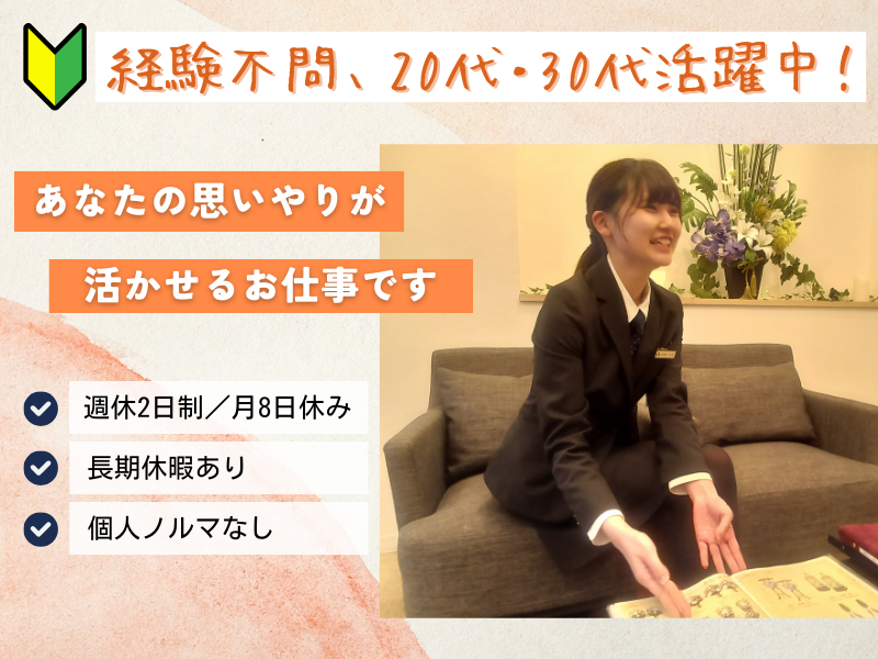 職種/仕事内容 | 仕事内容 / 1ホール1日1組限定。 同じお別れは、一つとしてありません。 \ ある日のお別れは、 故人が生前の趣味だった 三味線の奏者をお招きして お別れの演奏会を催しました。 画家として活躍された旦那さんを 偲び、画廊個展のような セレモニーを企画したことも。 そしてまたある時は、 賑やかだった故人を偲び 参列者がドレスを着用して 笑顔のお見送りをしました。 これらを企画、実現するのが 葬祭ディレクターのお仕事です。 大切なのは思いやりの気持ち。 あなたのホスピタリティを 葬儀という形で表現してください。 限られた時間のなかで、 できる最善のカタチを演出するのが ファミーユのやり方。 1ホール1日1組限定だからこそ ご家族とゆっくりお話しして、 気持ちを具現化するための アイデアを出していきます。 今回の採用は価値観重視。 *人のために努力できる *ご家族に満足いただきたい そんな方をお待ちしています。 チームで取り組むので、 個人ノルマはありません。 利用者の満足度が評価になり 収入やポジションへつながります。 安定して年収500万円以上を 見込めますので、おもてなしに 心から集中できる環境です。 流れ作業になりつつある お葬式に待ったをかけて、 心からのおもてなしを お届けしていきませんか? - POINT①:会社の成長性・安定性 - 質にこだわったサービスが認められ、 お客さまの96%の高い満足度で ご評価いたあき、ありがたいことに わたしたちへのご依頼も年々増加! 現在、全国に141ホールを構え、 600名以上の社員が在籍しています。 *2030年までに300店舗まで拡大予定 *家族葬を選ばれるご家庭が年々増加 - POINT②:手厚い待遇・福利厚生 - 地元で長く働いてほしいから…。 全国展開していても、 「転勤なし」の条件のほか *資格取得制度(合格一時金) *資格・応援・待機手当が充実 *インセンティブ&明確な評価制度 など、待遇もバツグンです。 |