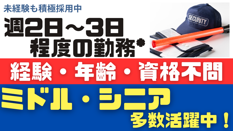 対象となる方 | 求めている人材 ◎無資格・未経験大歓迎! ◎年齢不問 ◎40代・50代中高年活躍中 ◎60代以上のシニア活躍中 ◎ミドル活躍中 ◎学歴不問・職歴不問 ◎転職者歓迎 ◎経験者も歓迎!ブランク歓迎! ※18歳以上(警備業法により) ◤中高年活躍中・男性活躍中!◢ 休憩もしっかりあるので 負担も少なく働けます! 新規スタッフの募集なので、 「警備業界が初めてで不安…」 という方もご安心ください。 充実研修やサポート体制万全の環境で 安定して勤務可能です! ⋆⸜ 未経験の方大歓迎 ⸝⋆ |