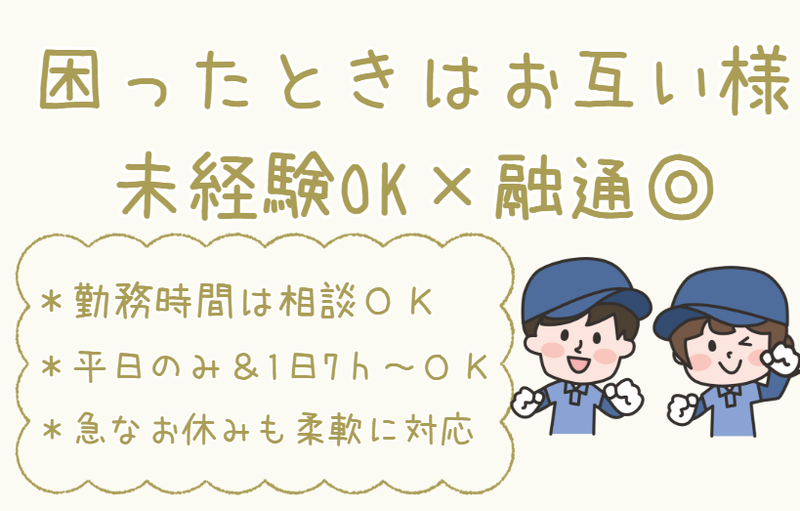 職種/仕事内容 | 仕事内容 ▶▶家庭とも両立しやすい! ▶▶このお仕事のおすすめPOINT  ̄ ̄ ̄ ̄ ̄ ̄ ̄ ̄ ̄ ̄ ̄ ̄ ̄ ̄ ̄ ̄ ̄ ✅ 家庭を第一に!急な休みも柔軟に対応 ✅ 平日のみOK! ✅ 土日祝休みで家族との時間もたっぷり ✅ 未経験OK!コツコツ&モクモク作業 ✅ 1食300円で食堂利用可能! 「子育ても落ち着いてきたし、そろそろお仕事を始めたいな」 「でも、家族との時間や自分のペースも大切にしたい」 「接客は少し苦手かも…」 ▼そんなあなたにピッタリのお仕事♪▼ "☆・*。・─────────────── ✨あなたの『家庭第一』を応援します✨ ───────────────・。*・☆" 「子どもが急に熱を出して…」 「明日は学校行事で休みたい」 そんな時も、遠慮なくご相談ください! もちろん、当日の急なお休みにも柔軟に対応します◎ 「困ったときはお互い様」が合言葉の、温かい職場です。 みんなで支え合いながら働いているので、 安心して飛び込んできてくださいね♪ ✿:✽・✽:✿:✽・✽:✿:✽・✽:✿:✽・✽:✿ ✅仕事中は自分の世界に没頭できます ───────────────── 家庭を大切にできる環境だから、 仕事にもしっかり集中できます。 あなたにお任せしたいのは、 特別な経験やスキルが必要ないモノづくりのお仕事。 学生時代に図工が好きだった方や、 手芸などが好きな方にもオススメです! 細かい作業でキレイに仕上がった時の達成感は格別◎ 「気づいたらもう終業時間!?」 なんてことも日常茶飯事ですよ♪ ✿:✽・✽:✿:✽・✽:✿:✽・✽:✿:✽・✽:✿ 【お仕事内容】 工業用ブラシの製造に関わる検査作業をお願いします♪ ・図面の寸法・外観等を検査 ・計測器(ノギス・外測マイクロメータ・栓ゲージ)を使用して測定 |
