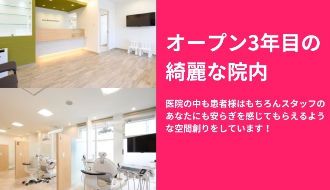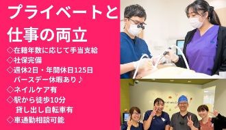 職種/仕事内容 | 【雇用形態】 正社員 【職種】 歯科医院での受付やアシスタント業務 【仕事内容】 2022年2月にオープンした歯科医院での歯科助手のお仕事です。 当院は受付・事務・アシスタント業務全般を行っていただく勤務体系となっております。 保育士、言語聴覚士、放射線技師、管理栄養士など他業種の資格をお持ちの方も是非ご応募下さい! 国家資格を活かして、新たな職種にチャレンジしてみませんか? 現在、他業種の資格を持ったスタッフも活躍しております! 【詳細仕事内容】 ・受付や会計業務 ・案内 ・歯科医師や歯科衛生士のアシスタント ・医療器具の管理や準備 ・その他 【仕事の特徴】 「楽しく仕事をしたい」をポリシーに、明るく活気に満ちている医院を目指しています。 そのオープニングの中心メンバーとして、頑張っていただけるメンバーを募集しています。 未経験は勿論、これまでの経験や知識を存分に発揮していただける職場です! 【基本理念】 “ Make You Smile " 〜明日の笑顔がもっと輝くように〜 ·患者様みなさまに笑顔を届けたい ·一人でも多くの患者様と出会い、役に立ちたい ·今日よりも明日、笑顔がもっともっと輝くように、 患者様一人ひとりに寄り添った診察、治療のご提案を心がけます ・「笑顔」で「楽しく」をモットーに ・スタッフ教育に力を入れます ・まごころ診療をこころがけます 正社員 |