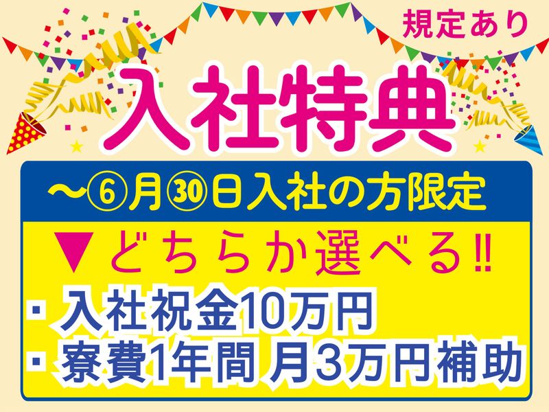 待遇・福利厚生 | 【保険制度】 雇用保険、労災保険、健康保険、厚生年金 【福利厚生】 待遇・福利厚生 【福利厚生】 ・社会保険完備 ・交通費規定⽀給 ・資格取得促進⽀援制度 ・退職金制度あり(規定) ・昇給あり ・賞与年2回あり ・住宅⼿当(規定) ・有給休暇 ・作業着貸与 ⇒私服で出勤し作業着を着⽤ ・⾷堂あり(1⾷200〜500円程) ⇒メニュー豊富で美味しい♪ ・休憩室、飲み物やパン等の⾃動販売機あり ⇒ソファー、テーブルありで快適︕ ・24時間営業の売店(コンビニ)あり 【ワンルーム寮あり】 *⾵呂・トイレ別 *エアコン・照明・カーテン・テーブル・1⼝コンロなど備品完備 ⭐選べる入社特典(規定有)⭐ ~6月30日に入社の方限定! ★入社祝金10万円 ★寮費1年間 月3万円補助 ※上記いずれかが選べる! |