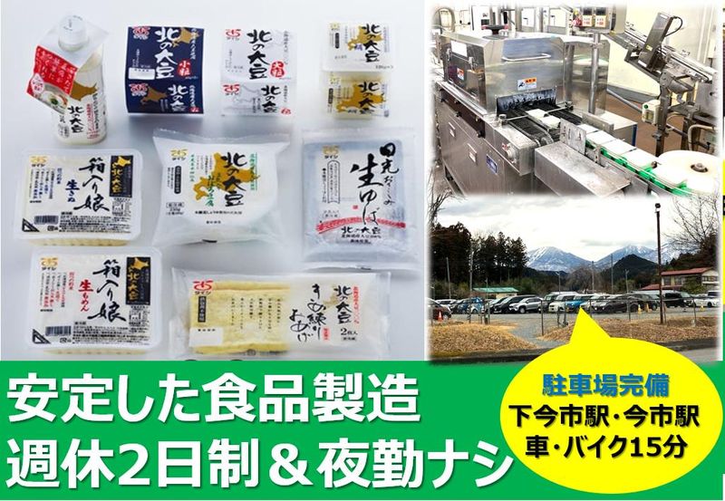 職種/仕事内容 | 仕事内容 ****この求人のポイント**** 東証プライム上場企業・安定性抜群 ・年齢・学歴不問(中卒・高卒OK) ・基本からの指導でキャリアアップ ・週休2日・有給消化率100% ・賞与年2回・毎年確実に昇給 ・住宅手当・家族手当など待遇充実 ***************** 「安定した大手企業で正社員になりたい」 「週休2日でプライベートも大事にしたい」 そんな方におすすめの求人です! \応募は簡単!1分で完了/ まずは話を聞いてみたいという方も歓迎! 応募ボタン又はお電話でご応募ください。 ――――――――――――――――――― 【主な仕事内容】 豆腐・油揚げなど大豆製品工場の 検品・箱詰め等の工程 工程管理まで行います。 <入社後は基本的な業務> 担当するラインで作業 *出来上がった製品のチェック (包装などの不備を確認) *段ボール、輸送用ケースに 製品を詰め込む作業 ・・半年かけて丁寧に研修します。 <現場の業務を習得したら> スタッフの配置方法や 工程管理を基本からご指導します。 ―――――――――――――― ■水がおいしい日光 お豆腐づくりに欠かせない 良い水がふんだんな日光エリア。 当社は、大豆製品メーカーと提携し 製造・生産管理を行っています。 ■未経験からゆくゆくリーダーに! 初歩からステップアップするので 前向きに取り組めれば大丈夫。 学歴不問!頑張り次第で早期に リーダーポジションまで目指せます。 ■3年で60万!10年で160万!! 毎年確実に昇給します。 例えば、1年目年収330万→ 3年目390万→10年目490万など 勤続年数も加味されグンとUP。 福利厚生の良さは大手ならでは。 住宅手当、家族手当、役職手当 など個別の手当も充実。 ■週休2日・希望日もOK 工場は休みませんが社員は週休2日。 管理社員は現在3名おり、 毎月希望を出し合っています。 お子さんの行事などもあれば 気軽に言ってくださいね! ■車・バイク通勤OK! 従業員は日光市内・市外各方面から通勤しています。 ※アクセス一例※ 下今市駅から車で15分程度。 宇都宮駅・鹿沼駅から車35分 矢坂駅から車32分 など 入社時期はご相談に応じます。 現在就業中の方もご検討下さい。 |