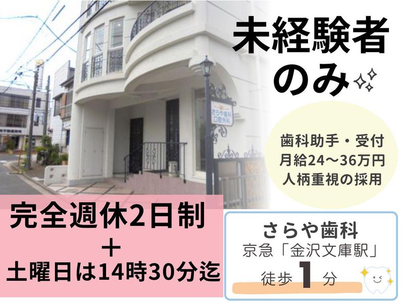 職種/仕事内容 | 仕事内容 【Point】 ✨未経験者の方のみ ✨完全週休2.5日(木・日・祝+土曜午後) ✨人柄重視のあたたかい職場 ✨金沢文庫駅から徒歩すぐの好立地 今回は、未経験者の方のみの募集です。 お任せするのは、 歯科診療のサポート業務を中心に、 受付対応や簡単なデータ入力など。 業務は一から丁寧にお教えするので、 経験や専門知識は必要ありません。 「人と接するのが好き」 「誰かの役に立つ仕事がしたい」 そんな気持ちをお持ちの方にピッタリです。 院長が大切にしているのは、 「患者さまの立場に立って考えること」 「スタッフの“人柄”を何より尊重すること」 その考えから、スキルや経験よりも “あなたらしさ” を大切にした採用を行っています。 明るく元気なあいさつ 相手を思いやる気持ち── それが何よりの“資格”です。 失敗しても大丈夫。 どんなに一生懸命でも うまくいかない日もありますよね。 そんな時、私たちは 責めることはありません。 プレッシャーのない環境で、 あなたらしく働いてほしいと考えています。 スタッフ同士の距離が近く、 気づけば自然と助け合っている── そんな、あたたかい雰囲気の中で お仕事ができます。 特別な経験やスキルよりも大切なのは、 明るく、思いやりを持った対応が できればきっと活躍していただけます。 |