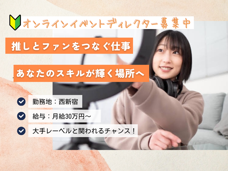 職種/仕事内容 | 仕事内容 大手レーベル案件に関われる!  ̄ ̄ ̄ ̄ ̄ ̄ ̄ ̄ ̄ ̄ ̄ ̄ ̄ 「人気アーティストの舞台裏で働きたい!」 「エンタメの最前線に挑戦したい!」 そんな想いを叶えるチャンスです✨ ⭐ お任せしたいお仕事  ̄ ̄ ̄ ̄ ̄ ̄ ̄ ̄ ̄ ̄ ̄ ̄ ̄ 入社後は ディレクター業務 に挑戦! ✅ 大手レーベルとの企画打ち合わせ ✅ 配信当日の機材準備と進行管理 ✅ タレントの現場サポート全般 ✅ グッズや特典商品の在庫・発送管理 ✅ ファンからのお問い合わせ対応 幅広い業務を通じて、 人気アーティストイベントを支えます! オンライン特典会とは?  ̄ ̄ ̄ ̄ ̄ ̄ ̄ ̄ ̄ ̄ ̄ ̄ ̄ ファンが購入したCDやグッズに、 配信中タレントが名前入りサインを記入。 その“特別な一枚”を全国のファンへ 直接届けられる仕組みです。 遠方からでも参加できるため大人気! 新しいエンタメ体験として注目度UP中! さらに、イベントと連動した 公式グッズや特典商品の物販も担当。 発送管理や特典企画まで担っています。 ✨ 未経験でも安心✨  ̄ ̄ ̄ ̄ ̄ ̄ ̄ ̄ ̄ ̄ ̄ ̄ ̄ 「経験がなくて不安…」そんな方もOK! 先輩スタッフがしっかりサポートします。 特別な資格や専門スキルは不要! 意欲と学ぶ姿勢があれば大歓迎です✨ ✅ こんな方におすすめ  ̄ ̄ ̄ ̄ ̄ ̄ ̄ ̄ ̄ ̄ ̄ ̄ ̄ ・人気アーティストの現場で働きたい方 ・新しいことにチャレンジしたい方 ・複数タスクを整理して動ける方 ・人に安心感を与えられる方 ・成長市場でキャリアを築きたい方 大手レーベルや人気アーティストの イベント運営に携われる激レア求人⭐ ファンが笑顔になる瞬間を、 あなたの手で一緒に支えませんか? |