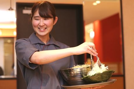 職場環境・雰囲気 | 職場環境 【従業員構成】 ・男女人数 男性:15人 女性:25人 ・職種 高校生:7人 大学生・短大・専門学校:14人 主婦・主夫:11人 社員(契約・派遣含む):2人 フリーター・アルバイト:6人 <勤務時間中はこんな風に働いています!大学生の勤務例◎> 授業が終わった夕方から閉店後の後片付けまで勤務の大学生の場合 17:00 出勤したらまずは連絡事項が無いか確認。その後接客に入ります。 呼び込み、お席へのご案内を始め、注文の承り、提供、レジなどお願いします。 19:00 仕事を終えたお客様が続々と来店して忙しくなってくる時間帯。 お客様がくつろげる様笑顔でお迎え◎ また、通常のメニューの他にビールや焼酎や、 グループのお客様にはみんなで食べられるメニューなどプラスワンのお勧めもお願いします♪ 21:00 そろそろお客様の波も落ち着いてくる頃。お客様が店内でゆっくり過ごせるよう様にご飯やお味噌汁、 キャベツのお代わりのお声掛けや、食事が終わったお客様にはお皿を下げてお茶を提供します。 忙しさもひと段落してお客様と談笑する余裕も♪ 更に余裕が有る時はキッチンのお手伝いもお願いします◎ 22:00 閉店。お客様をお見送りしたら売り上げ精算をして終了◎ 今日も一日お疲れ様でした!早く帰ってゆっくり休んでください♪ 【職場の雰囲気】 にぎやかな職場 協調性がある 立ち仕事 アットホーム お客様との対話は多い 初心者活躍中 自分の都合に合わせやすい 知識、経験不要 |