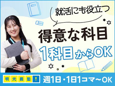 職種/仕事内容 | 仕事内容 具体的には 講師1対生徒3名程度の個別指導。 指導科目・学年などは相談可能です! ■授業の流れ■ ・日常会話で生徒とコミュニケーション ・前回の授業を復習 ・問題を解きながらわからない箇所への指導・アドバイス ・授業の記録をタブレットで管理画面に入力 未経験でも安心してスタートできる研修制度が整っています! 塾講師になるまでの流れ 【応募】 ▼ 【面接】 ▼ 【学力&適性検査】 ▼ 【採用!】 まずは研修映像を見て基本を学ぶ新人講師研修を。 その後、授業見学やロールプレイングなど明光義塾ならではの充実した研修を実施。 未経験の方でも自信を持って明光義塾の講師としてデビューできるよう、 しっかりサポートします! 指導科目 英語・数学(算数)・国語・理科・社会 化学・物理・日本史・世界史・小論文 現代文・古典・生物・地学科目から、 指導可能な科目をお任せします。 面接時に希望をお伺いします。 「まずは小学生の算数から…」 「英語は高校生までなら…」など、 ご希望に合わせて担当科目を決定しますので初めてでも安心です♪ 幅広い世代が多数活躍中♪ 20代を中心に幅広い世代が活躍中 8割が未経験からのスタートです。 大切なのは、生徒に寄り添い続ける気持ち。 意欲や人物面を評価しているため、 教員免許の有無や学力の高さなどは問いません。 Wワーク・副業といった働き方も歓迎しています。 保護者の方とのやり取りは 基本的に社員が行うのでご安心ください。 就活に繋がる最高のお仕事 明光義塾での講師としてのアルバイト経験は、 就職活動の際に「武器」になります。 コミュニケーションスキルはもちろん、 講師としての「教える・伝える」経験は、 様々な企業の採用担当者様も注目しています◎ 堂々と就職活動でアピールできますよ♪ 最新の教育情報も発信しているので、 ご自身のお子様の受験等にも役立ちます |