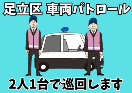職種/仕事内容 | 仕事内容 足立区の街をパトロールカーで走ります。 基本は車移動なので、身体の負担もありません! 足立区を安全に快適に過ごせる場所にするためのお仕事です。 2人で1台の車を運行します。 隣に先輩がいるのでご安心ください! シンプルな仕事内容なので、経験が無い方でも始めやすいのが魅力です。 車移動なので、身体の負担もありません。 2人で行動するので、分からないことがあっても安心です。 未経験の方も歓迎! 地域に貢献できるやりがいあるお仕事です。 シンプルな仕事内容ですので、 年代や経験問わず長期で安定して働くことができますよ! |