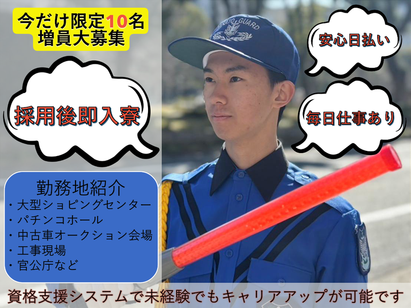 職種/仕事内容 | 仕事内容 これから働きやすいシーズンに入ります! ⭐学生・シニア・中高年活躍中 ⭐未経験スタートでも大丈夫! ⭐日払い・週払いOK!学歴不問! ⭐週1日~OK!シフト融通◎ ⭐テスト期間は週0もOK♪ ◤―増員募集!積極大量採用中!―◥ ▶▶▶ ☎:052-383-4681 電話応募も歓迎!お気軽にどうぞ! ◣―――――――――――――――◢ =-=-=-=-=-=-=-=-=-=-=-=-=-= イオンモール熱田店での 警備スタッフ大募集 =-=-=-=-=-=-=-=-=-=-=-=-=-= 駐車場警備や歩行者・車両誘導などを お願いします <1日のお仕事の流れ> 10:00~11:20▼業務開始、交通誘導 11:20~12:00▼40分休憩 12:00~13:20▼交通誘導 13:20~14:00▼昼休憩 14:00~15:20▼交通誘導 15:20~16:00▼40分休憩 16:00~17:20▼交通誘導 17:20~18:00▼40分休憩 18:00~19:20▼交通誘導、業務完了 ※上記は一例です。 日により変更する場合がございます。 ✅シフト柔軟!週1日〜OK! ――――――――――――――――― 自分のライフスタイルに合わせて 働けるので、学生さんやフリーター、 主婦(夫)の方にも最適です。シフト の融通が利くので、学業や家庭の 都合に合わせた働き方が可能です。 ✅日払い・週払いOK! ――――――――――――――――― 急な出費にも安心!日払い・週払い 対応しているので、週末の飲み会や 急な支払いにも便利です。 ✅未経験者歓迎! ――――――――――――――――― シンプルで覚えやすい内容ばかり なので、警備経験がなくても心配 いりません。初めての方でも先輩 スタッフがしっかりサポートします。 ✅安定収入を得られる! ――――――――――――――――― 日給9120円以上で、週5日以上働けば 月収22万円以上も可能!安定した収入 を得られるので、フルタイム勤務の方 にもぴったりです。 |