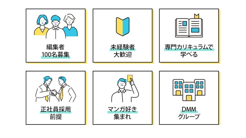 職種/仕事内容 | 仕事内容 \デジタルマンガで業界No.1を目指し、100名採用を実施中!/ <この求人の魅力> ★1年目から漫画制作に携われます! ★未経験でも3カ月で編集者として現場で活躍できる独自プログラムを開発! ★20代~30代の若手が活躍中の職場(35歳以下の在籍社員割合58%) ★年間休日125日◎ ★残業時間は15~20時間/月ほど◎ ★リモートワークもOK ★フレックスタイム制 ★私服勤務OK(ネイル、髪色自由) ★年収310万円~450万円+インセンティブ ★DMMグループ 【漫画編集者を募集!】 「漫画が好き」 その想いが漫画編集者の仕事では1番大事な素養です。 あなたの“好き”を活かして、漫画編集の仕事にチャレンジしませんか? 「多くのマンガを世の中に広めていきたい」「こんなコンテンツのマンガをつくりたい」 そんな想いがあれば、当社では活躍の場を用意します。ぜひ弊社へ入社をしていただき、チャレンジしてください! 【未経験から編集者への3step】 漫画家養成専門学校と連携をして編集者育成の独自プログラムを開発。 未経験からご入社いただいた方は全員、その研修プログラムを受けていただきます。 <研修スケジュール> ▼1~2か月目/編集知識を獲得 編集知識を獲得 e-leaning(WEB講座)にて基礎知識を学び、実際の制作進行も経験いただきます。 企画立案にもチャレンジをして、漫画編集者としてのイロハを学んでいただきます。 ▼3か月目/レーベルに配属、業務スキルを習得 DMMグループだからこそ、多くのレーベルの選択肢があります。 先輩に話を聞いてみたり、定例会に参加をしたり、実際に現場を見てから自分にあった配属先が選択可能です! また漫画編集者デビュー後もしっかりサポート まずは先輩のサポートをするなかで、作家さんとの打ち合わせにも参加していただきます。 編集スキルを現場で学び、念願の漫画編集者デビューです。 【仕事内容】 未経験採用の漫画編集者として、作家さんの発掘、管理、掲載漫画の企画などをご担当いただきます。 ◆作家さんの発掘、管理、掲載漫画の企画などを担当 ・クリエイター(作家、漫画家、原作者)との調整業務 ・クリエイターの発掘、交渉 ・掲載コミック、漫画の企画 ・配信データの入稿補助 ・作品データの管理、整理 ・市場調査、リサーチ業務 ・SNS運用 ・販促企画(資料作成など) など 【会社概要】 株式会社CLLENNは、様々なエンタメ事業を展開するDMMグループの漫画部門を担っています。デジタルマンガで業界No,1を目指すべく編集者を大幅増員いたします。 DMMグループのシナジーを活かし、作品のグッズ化、アニメ化、ゲーム化、舞台化、映画化など…。 “その先”の可能性を追求して、より作品にスポットライトが当たる世界を実現していきます。 企画段階から新たな漫画を創造する仕事に携わることができるため、 「こんな作品があったらいいのに」 「○○のマンガを連載したい」 などの熱い想いを叶えられることも弊社の魅力です。 - 【先輩インタビュー①】 前職では紙媒体の編集をしていましたが、CLLENNのデジタル展開の速さと、新しいことを積極的に試す社風に惹かれました。 ここなら、これまでの経験を活かしながら、新しいヒット作を生み出せると感じたんです。 実際、入社後は若手の意見もどんどん採用され、大きな企画にも関わっています。 漫画家さんと一緒に作品を作り上げ、読者の反応を直接感じられるのは、本当にやりがいがありますね。毎日が刺激的で、とても楽しいです! 【先輩社員インタビュー②】 前職はWEB広告運用で数字と向き合っていましたが、ユーザーの生の声に触れ、面白いコンテンツを広めたいとCLLENNを選びました。 広告で培ったニーズ分析やプロモーション戦略の知見が、漫画の企画から読者動向分析、売り出し方まであらゆる場面で活かせると実感。 SNSでの読者反応分析で作品改善やプロモーションに繋がった時は、大きな達成感があります。企画からプロモーションまで一貫して関われるこの環境は、経験を活かし、自分の可能性を広げられる最高の場所です。 毎日が新しい発見の連続で、本当に充実しています。 【先輩社員インタビュー③】 前職はIT企業でシステム開発をしていましたが、自分の手でコンテンツを企画し、世に影響を与えたいとCLLENNへ。 ITで培ったデータ分析力やロジカルな思考力が、作品改善や新企画に活かせると実感しています。実際にデータ提案で作品が面白くなったり、効率化ツール導入で成果が出たりするたび、大きなやりがいを感じます。 若手のアイデアも形になりやすく、IT知識と漫画への情熱を掛け合わせ、次世代ヒットコンテンツ創りに挑戦できる。毎日が刺激的で、とても充実しています。 - 【株式会社CLLENNにフルコミットして絶対に後悔させません!】 急成長中の弊社では新たな漫画編集者としてのキャリア、夢を叶える方々を全力で成長させられる環境が整っています。 下記の求める人物像をご覧いただき、当てはまる方はぜひ応募してください! |