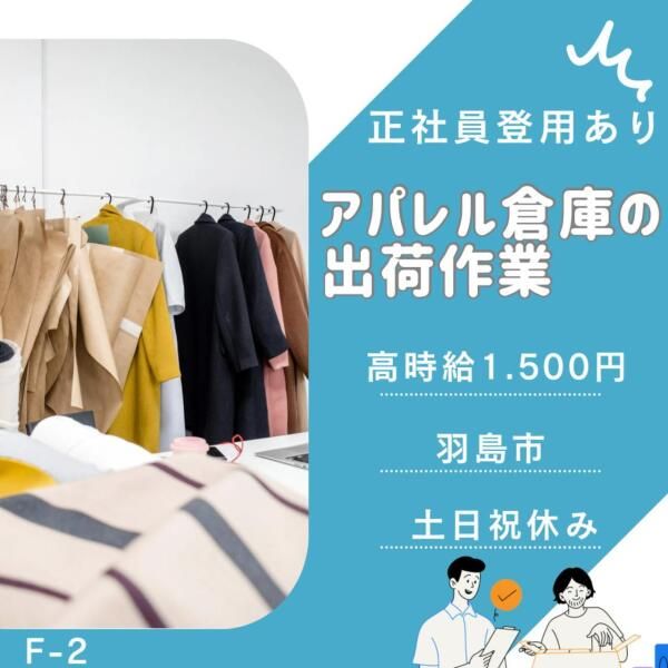 職種/仕事内容 | 仕事内容 アパレル倉庫での充実した職場環境を お楽しみください! ・入庫や出荷作業を担当していただきます。 ・毎日の業務には、値札付け、出荷準備、 在庫管理が含まれます。 ・快適な空調完備で、残業も月10時間以内 と少なめです。 ・派遣期間の時給は1,500円、基本給は 30万円から35万円、賞与は年2回支給されます。 ・物流経験者を特に歓迎します! この魅力的な職場で一緒に働きましょう! |