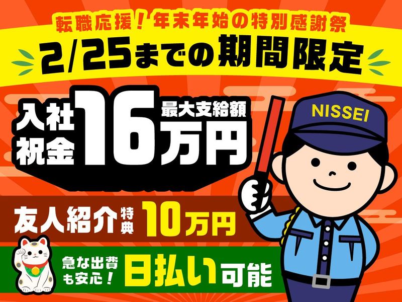 待遇・福利厚生 | 【保険制度】 雇用保険、労災保険、健康保険、厚生年金 【福利厚生】 待遇・福利厚生 【福利厚生】 ・社会保険完備 ・正社員登用制度あり ・入社祝金最大16万円支給 ・日払いあり(来社不要) ・制服貸与(預かり金なし) ・交通費規定内支給 ・資格取得支援制度(会社全額負担) ・友人・ご家族紹介キャンペーン10万円支給 ・研修について 1日10,000円 最大3日30,000円 ※経験年数と資格で研修日数は変動します。 <<研修+初回入社祝い金について>> ・研修手当3日間:最大3万円支給(交通費含む) ・入社祝金3勤務目:1万円支給 ⇒現場勤務3日終了後に研修手当と合わせて4万円GET♪ ※経験・所持資格により研修日数・研修手当支給額が変動します ◆入社祝金最大16万円支給 ~内訳~ 3勤務 10,000円(手渡し) 10勤務 20,000円(手渡し) 20勤務 30,000円(振込) 40勤務 100,000円(振込) 【期間:4ヶ月以内】 日制警備保障では自分で欲しいと 思ったタイミングで給料がGET できるんです♪ 入社後アプリの登録で、コンビニ などのATMから24時間好きな時に お金をおろすことができます! わざわざ会社まで行く必要が ないのも嬉しいですよね。 ※日払いは、当日勤務分は翌日に お支払い可能です(規定あり) ※詳しくは研修時に お問い合わせください 【 日 制 警 備 保 障 に つ い て 】 昭和52年設立の歴史ある警備会社 として、特に交通誘導業務や列車見張 業務に関しては非常に豊富な実績を 誇っており、お客様からも高い評価を いただいています。 2023年2月より、 東証プライム上場企業である 「センコーグループホールディングス」 の傘下に入り、より一層多くのニーズに 応えられる会社へと成長を続けています。 |