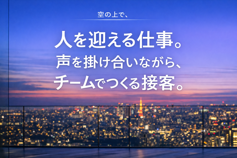 勤務地 | SHIBUYA SKY(渋谷スカイ)※渋谷スクランブルスクエア屋上 150-0002東京都渋谷区渋谷2-24-12 渋谷スクランブルスクエア |