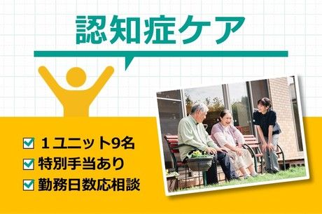 職種/仕事内容 | 仕事内容 ◆仕事内容 【グループホームの介護職員】 主なお仕事:食事や入浴、排せつ等の介助/レクリエーションの企画、実施/連携してのケア業務全般/食事作り/各種記録業務/受診/往診対応/地域交流の対応など <夜勤の場合> /食事介助、見守り/口腔、排泄、入床/起床介助/2時間毎の巡回/定時連絡と報告/食事作りなど サービス・職種の魅力 認知症の高齢者が共同生活を営む中で、必要な支援・援助・サービスを提供します。 少人数のユニット単位での共同生活により、認知症の症状を和らげ、進行を緩やかにすることを目的としています。 アットホームな環境の中で、精神的な安定や自立支援を目指した介護を少人数に丁寧に行えるのが魅力です。 年2回、特別手当あり! ツクイではできるだけスタッフの方へお給料として還元したいと考えており、パートで働くスタッフの皆様にも特別手当を支給しています。 年2回、最大16万円の特別手当の支給実績があります! (支給額は業績により異なります。 ) 正社員登用制度あり! 現在子育て中の方でいずれ子育てが落ち着いたら、働く日数を増やしたいという方、少しずつ仕事に慣れてから仕事の量を調整したい方など、大歓迎です! ※過去3年間で合計711名の方を採用しました! (2022年4月~2025年3月実績) 髪色・髪型自由!ネイルOK 髪色・髪型はもちろん自由、ネイルもOK! まつげエクステ・ひげもOK! あなたの「好き」を大切にしながら働ける職場です。 オシャレを我慢せず、自分らしさを活かしてのびのびと活躍できます。 個性を尊重する風通しの良い環境で、楽しく前向きにお仕事しませんか? ※社内ガイドラインあり |