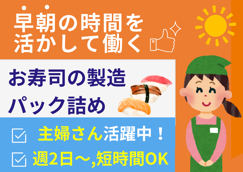 職種/仕事内容 | 仕事内容 地元密着型スーパー 「ウジエスーパー」の店舗にて お惣菜の製造・調理スタッフ募集! 【仕事内容】 ●お惣菜製造 スーパーのバックヤードで、 店頭に並ぶお惣菜を作るお仕事です。 専門的なスキルや経験は一切不要! はじめての方も丁寧にお教えします。しっかりサポートしていくのでご安心下さい。 【早朝勤務のメリット♪】 ●午前中の短時間だけ働き 午後は自分の時間に! ●他のお仕事との掛け持ちもOK! ●通勤ラッシュを避けて、ストレスフリー! 「早寝きで生活リズムが整う♪」 「午後は自分の時間♪1日が長くて充実」 「早朝はお店が静かで作業に没頭できる」 「午前メインなので無理なく続けられる」 そんな声多数! 週2日、短時間から働けるので、 家事やプライベートと両立もしやすい! 家庭と両立して働く主婦さん Wワークしているフリーターさん 幅広い年代のスタッフが活躍中! 【当社について】 県内31店舗を展開する地元密着型スーパーです。人が集まる場所ではなく、人が住んでいる場所にお店を展開することで、地域の皆様方にご愛顧いただいており |
