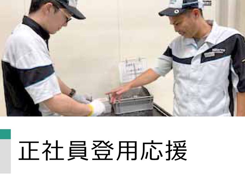待遇・福利厚生 | 【保険制度】 雇用保険、労災保険、健康保険、厚生年金 【福利厚生】 待遇・福利厚生 【福利厚生】 ・社会保険完備 ・制服貸与 ・交通費支給(規定) ・車通勤OK/バイク通勤OK ・社員食堂完備 (栄養豊富な定食が200円) < 各種手当 > ・残業手当(超過勤務分はすべて支給) ・休日出勤手当 ・深夜業手当 ・交替勤務手当 (1回1,200円~1,700円) ・家族手当 (配偶者7,800円、子供1人11,500円) < 以下は正社員登用後に付与 > ◆賞与あり/年2回 ◆昇給あり/年1回 ◆役職手当 ◆表彰制度 ◆企業型DC制度 ◆団体保険 ◆持ち株会制度 ◆選択制福利厚生制度 (カフェテリアプラン) ◆退職金制度(勤続3年以上) <職場環境> ・化粧室は男女別 ・休憩スペースやお昼を食べる場所あり ・電子レンジ使用OK ・個人ロッカーあり < 研修があるので未経験でも安心 > ベテランの先輩が丁寧にお教えします マンツーマンで指導し、作業場でも 必ず近くに配置しサポートします なので未経験の方でも安心ですよ◎ < 正社員への道あり!> 2021年から2023年の間に 契約社員として入社した4名のうち 6ヶ月後に2名、12ヶ月後に1名が 正社員に登用されました(二野工場の実績) 最短で半年後に正社員になれるチャンス! < 1:先輩の声 > 全くの未経験から契約社員でスタートし、 半年後に正社員登用されました。 設備が整っていて快適だし働く環境も良好 福利厚生や手当も充実していて大満足です。 < 2:先輩の声 > 「いい職場だよ」と、父の勧めで入社しました。 無理な業務がなく心身ともにゆとりを持って 働けるので、家族も喜んでくれています。 仲間も和やかで、人間関係が良好です。 |