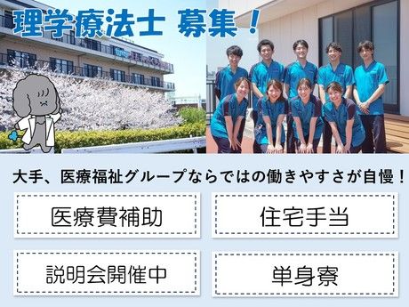 職種/仕事内容 | 仕事内容 江戸川区内の病院にて理学療法士(PT)を募集!説明会開催中です◎個別見学も随時開催! 【タムスさくら病院江戸川について】 病床数378床のケアミックス病院です。 ・地域包括ケア病棟78床 ・回復期リハビリテーション病棟240床 ・医療療養病棟60床 東京都から認知症疾患医療センターの認定も受けております。 ◆タムスさくら病院江戸川 リハ科Instagram 病院について、リハビリテーション科について、働く職員の紹介についてなど 日々、リハ科の様子を公開しています。ご応募ご検討されている方も是非、ご覧ください♪ →tums_rehabili ※見学もOK!お気軽にお問い合わせください。 【業務内容】 病院における理学療法士業務全般 ・リハビリテーション実施計画の作成 ・リハビリテーションの提供(運動療法、物理療法、装具療法) ・装具の管理や適合判断 ・リハビリ機器の管理 ・院内カンファレンスへの参加 【応募要件】 ・理学療法士資格 ◆携帯式カルテ導入 携帯端末を使って、パソコンがなくても直接カルテ情報を入力・参照することができます。 持ち運びができるので、業務効率の向上、情報共有の迅速化に繋がっています。 【待遇・福利厚生】長く働いていただくための各種制度をご用意しています! 通勤交通費支給 昇給 賞与(選択制) 退職金制度 再雇用制度/65歳まで(定年60歳:例外事由1号 ) 住宅手当(上限3万円) 単身寮 産休育休 社保完備 医療費補助制度 ハラスメント相談窓口 従業員向けメンタルヘルス窓口 社食あり(1食350円) 制服貸与 ※各項目規定あり 研修制度充実!あなたのスキルアップをバックアップします! 職員のスキルアップをバックアップする制度や待遇の拡充にも取り組んでいます。 月に1度、第一線で活躍される方を講師としてお招きして「特別講演会」を実施。 希望参加型で週2回開催される「勉強会・症例発表会」、外部研修参加時の費用補助の他、 学会や医療雑誌への論文発表など外部への発信もサポートしています。 【タムスグループお仕事説明会開催!】しのざき文化プラザで毎月開催! 【日程】 ・02/26(木)18:30~ ・03/17(火)18:30~ 【会場】しのざき文化プラザ(江戸川区篠崎町7丁目20-19) ☆各部署の担当者がご説明します。 ※15分前受付開始 |