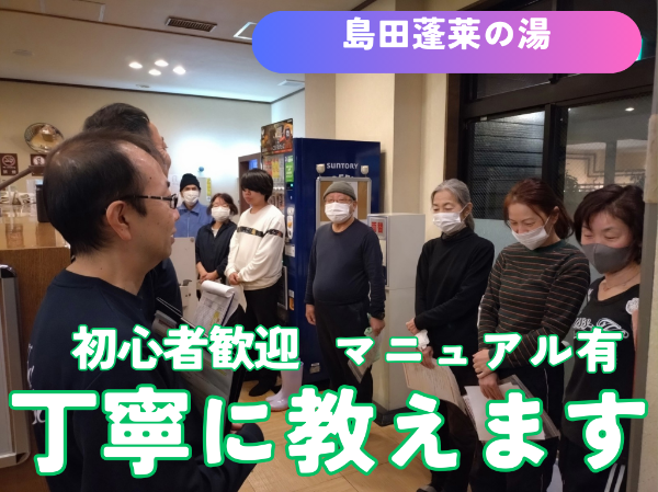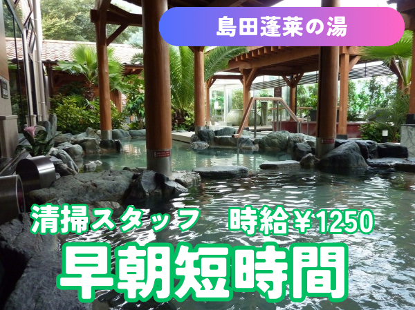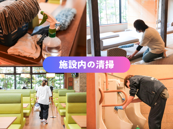 職種/仕事内容 | 島田市 島田蓬莱の湯/早朝の短時間☆30代から60代活躍中☆ 【アルバイト・パート/隙間時間を有効活用♪】 清掃スタッフ 静岡県島田市旭2-1-30 アルバイト・パート 求人の特徴 週 2・3 日から OK 週 3・4 日から OK 週 4 日以上 OK 40 代も応募可 50 代も応募可 60 代も応募可 70 代も応募可 バイトデビュー歓迎 中卒歓迎 主婦・主夫歓迎 学歴不問 未経験者歓迎 経験浅め歓迎 高卒歓迎 履歴書不要 職場見学可 電話で応募・問い合わせ 服装自由 髪型・髪色自由 車通勤 OK 業務内容 ー――――――――――――――――――――― ①未経験スタートが90%以上!清掃マニュアル完備で安心♪ ②20代~70代まで幅広い年齢層の方が活躍中です ③Wワークや扶養内OK!短時間勤務かつ簡単な作業のお仕事です ―――――――――――――――――――――― ●業務内容 島田蓬莱の湯にて清掃業務をおまかせします。 朝礼後、複数名で分担し清掃を行います。 具体的には… ・浴槽、床、ガラスなどの浴場内の清掃 ・サウナ室や化粧台など脱衣場の清掃 ・玄関、ホール内の清掃 ・ロッカーなど備品の清掃 など 清掃後は清掃用具の片づけを行い、最終チェック・終礼(報告事項の共有)を行い、業務終了となります。 ●先輩の声 私は清掃のお仕事は未経験だったのですが、周りのスタッフがとても優しく丁寧にサポートしてくれました。重い物の持ち運びが無いので体への負担も少なく女性や年配の方も安心です。 週末のみの勤務や、家事や育児と両立しながら働いたり、ライフスタイルに合わせて勤務できるので、助かっています。 職種 清掃スタッフ 雇用形態 アルバイト・パート 勤務体系 シフト制 リモートワーク制度 リモートワークなし |