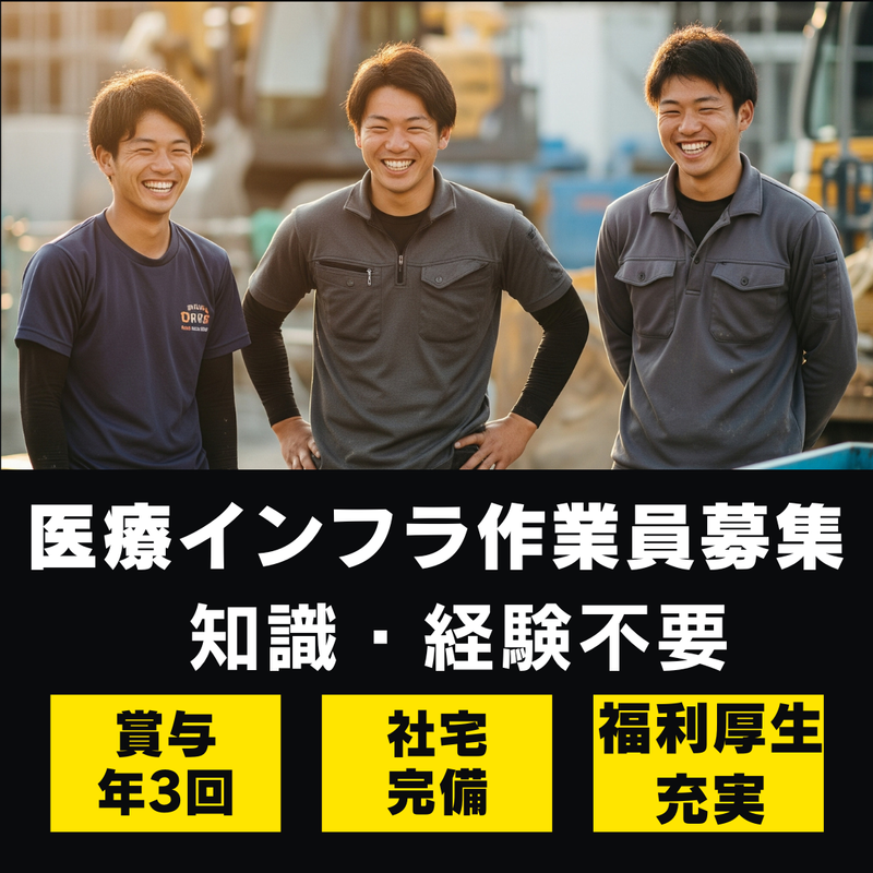 職種/仕事内容 | 仕事内容 / ✨命と、未来の技術を支える✨ 「見えないインフラ」の専門家へ! 専門スキルを身につけて働きませんか? \ ⭐当社について  ̄ ̄ ̄ ̄ ̄ ̄ ̄ ̄ ̄ ̄ ̄ ̄ ̄ ̄ ̄ 創業50数年来、医療や半導体といった 社会に不可欠な分野を支えているため 景気に左右されない安定基盤が強みです◎ 安心して長く働ける環境だからこそ 平均勤続年数は13年と高い定着率! 一生モノのスキルを身につけ未経験から プロになれるチャンスがあります♪ ⭐仕事内容  ̄ ̄ ̄ ̄ ̄ ̄ ̄ ̄ ̄ ̄ ̄ ̄ ̄ ̄ ̄ ・病院で使われる医療用ガス ・半導体工場などで使われる特殊ガス これらは人の命や最先端のモノづくりに 欠かせない大切なライフラインです! あなたにお任せするのは、 それらのガスを安心・確実に届けるための 「配管設備」を設置するお仕事です。 まるで血管のように張り巡らされた パイプで医療や産業の最前線を支える 社会貢献性の高い仕事です◎ 具体的には・・・ ✅現場(病院や工場など)へ移動 ✅図面を見ながらパイプのルートを確認 ✅専用の工具を使い配管を設置 ✅ガス漏れがないかなどをチェックする ✅最終確認 ※専用の工具でパイプをつないだり 曲げたりして配管を設置していきます! ※ガス漏れ等の確認には専用機器を使用 ⭐未経験の方も安心◎  ̄ ̄ ̄ ̄ ̄ ̄ ̄ ̄ ̄ ̄ ̄ ̄ ̄ ̄ ̄ 初めは先輩社員のアシスタントとして 工具の名前を覚えたり材料を運んだりする 簡単な作業からのスタートです◎ チーム(2~3名)で作業するので 分からないことはすぐに聞ける環境です。 |