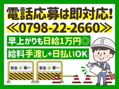 職種/仕事内容 | 仕事内容 ✨応募後にお電話で面接確約✨ ✨≪≪ 0798-22-2660 ≫≫✨ ✨年齢不問◎履歴書不要で面接!✨ \実はメリットたくさん?交通誘導/ 『外での警備って大変なんじゃ…』 そう思いますよね? この求人をご覧のあなたには 弊社ならではの交通誘導のお仕事の 「実は」をお伝えします◎ ============== ▶ここがメリット!3ポイント ============== ✅早上がりも日給が保障! ⇒現場によっては 「現場に車が到着したら終わり」 みたいなところだと、勤務時間が30分… それでも「日給1万円が支給!」 もちろん現場によるので 毎回とはいきませんが そんな現場に当たったときは 「ラッキー!」 と喜んでお給料をもらってください◎ ✅給料手渡し・日払いOK◎(規定あり) ⇒「今すぐに収入が必要」 「手元にお給料が欲しい」 そんな方を応援! 『未経験』からでも3日の研修を経て チャレンジできるお仕事なので まずはお気軽にご応募ください◎ 『経験者』であれば入社祝い金の支給も! ✅年齢不問◎週2~無理なく働ける! ⇒弊社では20代~60代、 学生・中高年・シニア、 幅広い方々が活躍しています。 社員の健康や働きやすさには 一倍気を使っているので、 ・週2.3~無理なく出勤 ・直行直帰OKで働きやすいよう勤務 ・飲み物手当や空調服購入時の補助 など 働きやすくなる環境づくりを 会社としてドンドン取り入れています◎ ▶そんな弊社なので… 元施設警備員のAさん 「一回ここでの交通誘導味わっちゃうと こっちの働きやすさが癖になりますよね。 早上がりの時も結構多いので 今日はどうかな~ってウキウキしたり(笑)」 元清掃スタッフのBさん 「大事にされてるって感じが心地よいです。 体調を崩さないように飲み物手当があったり 『どんな働き方が働きやすいか』を 出勤の仕方からシフトまで考えてくれたり 従業員として大事にされてるって思えます」 と嬉しい声をいただくことも。 少しだけでも気になったら、 ぜひお話しだけでも 弊社に聞きにいらしてくださいね◎ ============= ≪具体的なお仕事について≫ ============= 警備・誘導のお仕事をお任せ! <エリア> 兵庫県内(芦屋・西宮・尼崎など)の 阪神間の建築現場、道路、駐車場など ▶基本的には、西宮の事務所に集合して チームで現場へ向かいます。 ・送迎あり ・直行直帰OK なので、 ご自身の働きやすさや慣れに応じて 出勤してくださいね◎ <会社支援で資格の取得も可!> 業務に活かせる資格は入社後に取得可能。 費用面は全額会社負担! 資格取得後は手当もつきます◎ |