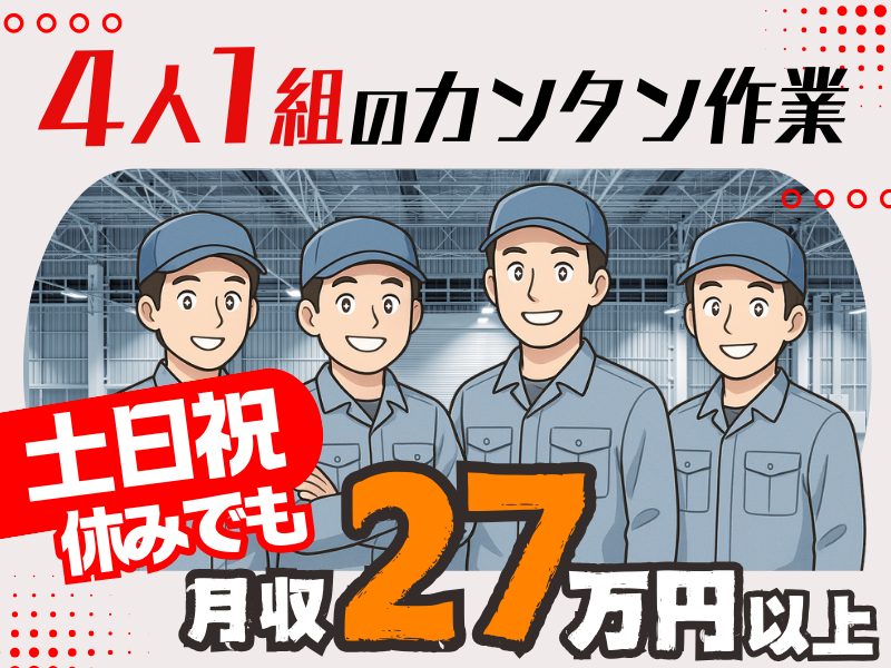 職種/仕事内容 | 仕事内容 ⭐ 高時給×土日祝休みのお仕事 ⭐ 電子機器メーカー工場での カンタンプレス作業をお願いします! 【具体的には】 ステンレス板(1メートル四方)をプレスし、 ゴム板をはさむカンタンな作業です。 ★4人1組で作業しますので、 先輩から丁寧に教えていただけます。 ★機械操作もとてもカンタン! 誰でもできる軽作業ですよ♪ ★丁寧にもくもくと作業できる方であれば 経験は問いません! ー ◣ おすすめポイント ◥ ✅高時給1,500円 未経験でもシッカリ稼げる! ✅週払いあり 急な出費も安心◎ ✅稼げる2交替勤務 土日祝はお休み♪ (祝日がある週は土曜日出勤) ✅即日勤務OK 長期で腰を据えて働ける! ✅30代・40代男性活躍中 工場経験者は即戦力として活躍可! ー ✨面接から最短1週間で入社✨  ̄V ̄ ̄ ̄ ̄ ̄ ̄ ̄ ̄ ̄ ̄ ̄ ̄ ̄ ̄ ̄ (*^〇^) ⭐ 当社「ピープル」の特徴 ⭐ スタッフさんに寄り添う系派遣会社です。 業務に慣れるまでは頻度高く、 慣れてからも1~2ヶ月に1度は 困っていることはないですか?と お声掛けします◎ もちろんそれ以外でも メールや電話の様子次第では 現地にお顔を見に行くこともあります。 え?世話焼きすぎですか?笑 あなたの距離感で構いません◎ 安心してお仕事ができるように サポートさせてください* - 応募するための住所打ち込んだり…が めんどくさい!苦手!な方は、 フリーダイヤル 0120-289-964 通話料金掛かりません◎ |