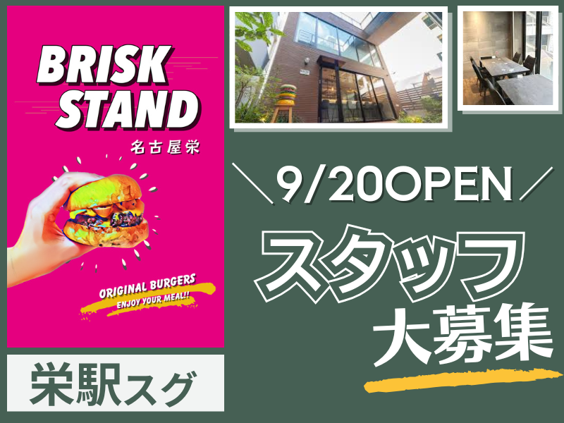 職種/仕事内容 | 仕事内容 。・⭐ 栄に待望のNEW OPEN ⭐・。 2025年6月に開催された 「グルメバーガー日本一決定戦」で 優勝した噂のグルメバーガーが 満を持して名古屋に上陸! ハンバーガー店のスタッフとして働きませんか? 未経験・学生・主婦(夫)さん、大歓迎! ⭐平日11:30~14:00入れる方⭐ ☘ BRISK STAND 名古屋栄店  ̄ ̄ ̄ ̄ ̄ ̄ ̄ ̄ ̄ ̄ ̄ ̄ ̄ ̄ ̄ ̄ ̄ ✨2025年9月20日にオープンしたばかり! ✨栄駅~徒歩3分!矢場町駅~徒歩5分! ✨1階:カウンター6席 2階:テーブル10席 スタイリッシュでお洒落な店内です 神戸発!メディアでも取り上げられる 話題のハンバーガーショップ! 「2025年グルメバーガー選手権で優勝」 東京・鎌倉・大阪では 連日行列のできる超人気店 名物は半分にカットしたバーガーを 丁寧に二度焼きして作る『切ったやつ』。 使用する食材は国産や無添加にこだわり 「罪悪感一切なし!」と大好評です♫ ☘ 仕事内容  ̄ ̄ ̄ ̄ ̄ ̄ ̄ ̄ ̄ ̄ ̄ ̄ ̄ ̄ ̄ ̄ ̄ キッチン業務全般をお願いします。 具体的には… ●簡単な仕込み ●調理・盛り付け ●食器洗い(食洗器使用) ●キッチン内の清掃 など ☘ こんな方にピッタリ!  ̄ ̄ ̄ ̄ ̄ ̄ ̄ ̄ ̄ ̄ ̄ ̄ ̄ ̄ ̄ ̄ ̄ ⏩ 学業と両立したい学生さん ⏩ 家事のスキマに働きたい主婦(夫)さん ⏩ カフェ・接客が好きな方 ⏩ 人と話すのが好きな方 ⏩ 新しいお店でイチからスタートしたい方 |