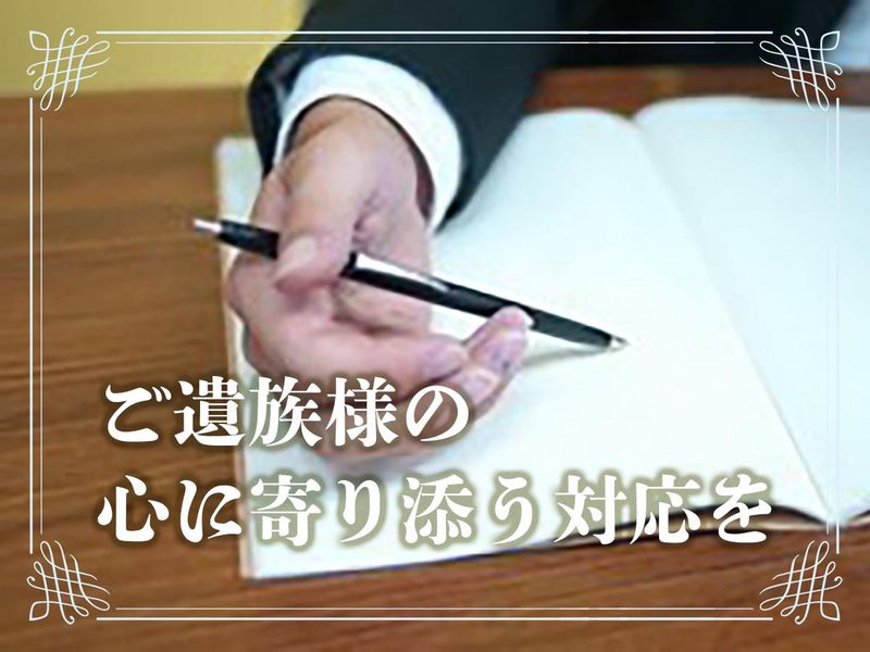 職種/仕事内容 | 仕事内容 一つひとつに心を込める「スローワーク」という選択。 急がない、無理しない。 誰かのためになる仕事。 無理なく、丁寧に、心にゆとりのある働き方、はじめませんか。 葬儀事前相談から 葬儀後のアフターフォローまで、 葬儀の総合職として 幅広い業務に携わっていただきます。 【葬儀場でのお仕事】 ■葬儀の依頼 ■ご遺族様との打ち合わせ ■送迎 ■式の進行 ■葬儀後のアフターフォロー など 【事務のお仕事】 ■葬儀のお問い合わせなどの電話応対 ■パソコンでの帳票類の入力処理 ■控室の整頓 ■お弁当の手配 など <未経験の方も大丈夫>======== お仕事の幅は広いですが、難しいことは ありません。葬儀のマナーや詳しい仕事の 進め方など、先輩が基礎から丁寧にお教え するので、安心して始めていただけます。 <こんな方を歓迎>========== ・普通自動車運転免許を持っている ・ExcelやWordの書類にデータ入力できる ・人前でしっかり話すことができる 必須条件は、上記の3つだけ! 葬儀業界での勤務経験は一切不問です。 接客やサービス業の経験があれば 受付などのお仕事で活かせますし、 事務職の経験があれば入力などで 活かせます。あなたの今までの経験を そのまま眠らせるのではなく、この仕事で 広く社会の役に立ててみませんか? <評価も昇給もあり>========= できることが増えれば、きちんと評価。 昇給などで還元します!認められた、 評価されたという事実は、働き続ける上で とても重要。高いモチベーションを 維持するために欠かせません。 ミドルシニアの方もまだまだ現役で 活躍中!あなたの頑張りも正当に評価! |