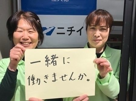 職場環境・雰囲気 | 【Point オススメポイント】 ■訪問介護未経験・ブランクのある方も安心スタート! 「介護の仕事経験はあるけれど、訪問介護は初めて…」 「介護職に就くのは久しぶりだから少し不安」 そんな方もご安心ください! いきなり難しい身体介護をお任せすることはありません。必ず研修期間があり、 先輩スタッフが同行して業務をサポートします。 また、スキルアップを目的とした研修もあり、働き始めてからも成長できる体制が 整っているので、安心してスタートできます◎ ■ライフスタイルに合った様々な働き方 自宅近くのエリアでのお仕事が中心で、直行直帰OK!WワークOKなので 空いた少しの時間でもお仕事ができます。 まずはあなたの希望を聞かせてください♪ 【Message 採用担当者より】 ☆介護業界最大手のニチイで安心☆ 入社お祝い金制度あり! 業務マニュアルや研修制度、OJT制度が充実しています! 研修期間中は担当の先輩スタッフが同行して業務をサポートします。 入社後、定期的な面談を実施しますので、悩みや不安な事をお聞きしながら 研修を進めていきます! 【お仕事相談会・拠点見学会・随時開催中◎】 選考ではありませんので、履歴書不要で参加OK! お仕事に関する疑問や働き方の相談ができます。 選考前に会社の雰囲気を知りたい方にもおススメです! 随時開催しているので、ご希望の方はご連絡ください♪ |