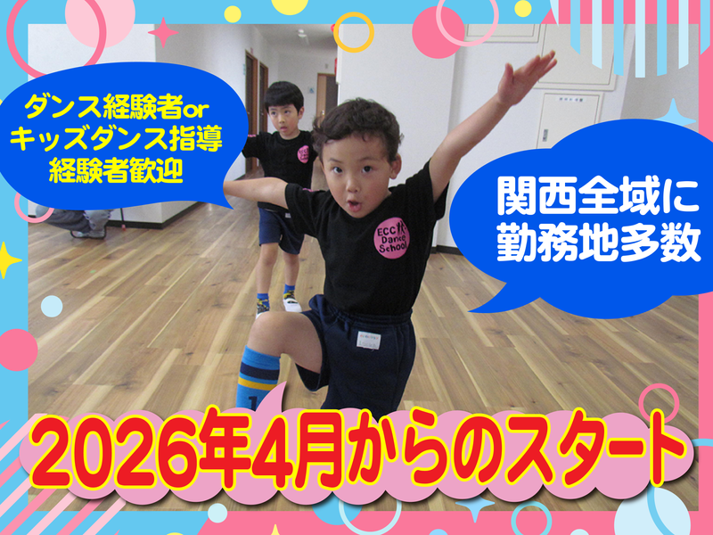 職種/仕事内容 | 仕事内容 ECC が契約している 幼稚園・保育園での 幼児を対象としたダンスレッスンです。 レッスンは1 人で担当して頂きますが、 本部のサポートが充実しているから 指導経験がなくても安心! インストラクターとしてのスキル・経験も身につけられます! ★お仕事の雰囲気を動画でチェック★ https://www.youtube.com/watch?v=s-T8MNCp-HU ■調整・折衝力が身につく!■ レッスンに付随する教室の管理運営、 受講者報告業務 当社契約施設対応、 保護者対応などもお願いします。 ■アピールポイント■ 関西エリア全域に勤務地多数! 平日週1 コマから勤務可能です◎ ダンスが好きな方、体を動かすのが好きな方、 幼児教育に興味がある方…など大歓迎! 2026 年4 月に開始予定! それまでに研修3 回と開始後のサポートもあります。 ■希望エリア応相談!■ 基本的にお住まいの近く(通勤1 時間前後)を想定しております。 ■お仕事数が増加中!■ ダンスが学校の必修科目になった事により、 「小さいころからダンスを身近なものとして馴染ませたい」 という保護者が増加しています。 ダンス人気と共に園内でダンスを習わせたい という希望も増え、 「ダンススクール」の全国展開をスタートしました。 ECC のパートナーとして活躍してみませんか? 働く日数・時間も選べるので自分のペースでお仕事できますよ◎ 家事・育児・趣味との両立もバッチリな環境です。 |