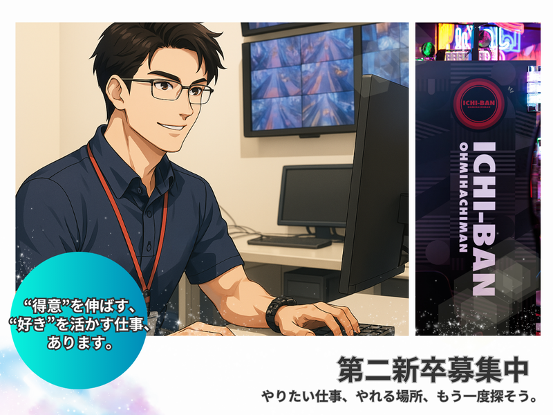 職種/仕事内容 | 仕事内容 2025年7月より、第二新卒採用はじめました。 ■Instagram■ https://www.instagram.com/ichiban_human/ 髪色も、ネイルも、そのセンスもぜんぶOK。 自分らしく、でもしっかりキャリアも積める会社、あります。 「就職って、"らしさ"を捨てないとダメですか?」 ――そんなモヤモヤを抱えていたあなたへ。 株式会社イチバン・コーポレーションは、 個性も、やる気も、全部まるごと受け止める会社です。 髪色・ネイル・ピアスも自由。 敬語がぎこちなくたってOK。 あなたの「やってみたい」気持ちさえあれば大歓迎。 \\ この求人のポイント! // ✅ “上限なし”のキャリアアップが可能! ✅ 京都・滋賀県内での勤務! ✅ 残業は月4時間以下! ✅ 7日間連続取得可能な長期休暇制度あり! ✅ 賞与年2回+業績賞与あり! 【どんな仕事?】 まずは、ホールスタッフとして店舗運営からスタート。 仕事内容はとってもシンプルです。 お客様対応(無理に話しかけることなし) カウンターでの景品交換 商品の在庫チェック 清掃や点検 など ◆お客様に“心地よく過ごしてもらう”のが私たちの仕事です。 ガツガツ話しかけたり、押し売りするようなことは一切ナシ。 だから、接客初心者でも大丈夫。 【キャリアアップ、どこまででも】 「アルバイト経験しかないけど大丈夫?」 →ぜんっぜんOK!未経験から、店長・本部職への道もひらけています。 入社1年後:ホールコーディネーター(24.4万円) 3年後:リーダー(27.0万円〜29.5万円) 5年後:マネジメントリーダー(34.0万円) 7年後:マネージャー/店長(38.5万円) 「将来は人事や企画にも興味ある」なんて希望も、どんどん言ってください。 【会社について】 株式会社イチバン・コーポレーションは、 「お客様に愛され、お客様を愛する」ことをモットーに、 地元密着型の運営をしているパチンコホール運営企業です。 大手と違い、大きな設備投資ではなく、 “目の前のお客様の小さな声”に応えていく運営スタイルが特徴。 一見クールに見えて、実は人想い。 そんなあたたかい場所で、あなたも一緒に働いてみませんか? 履歴書よりも、「ちょっと話聞いてみたい」でOK。 お気軽にご応募ください! 採用HP:https://job.ichiban.co.jp/ HP:https://ichiban.co.jp/ |