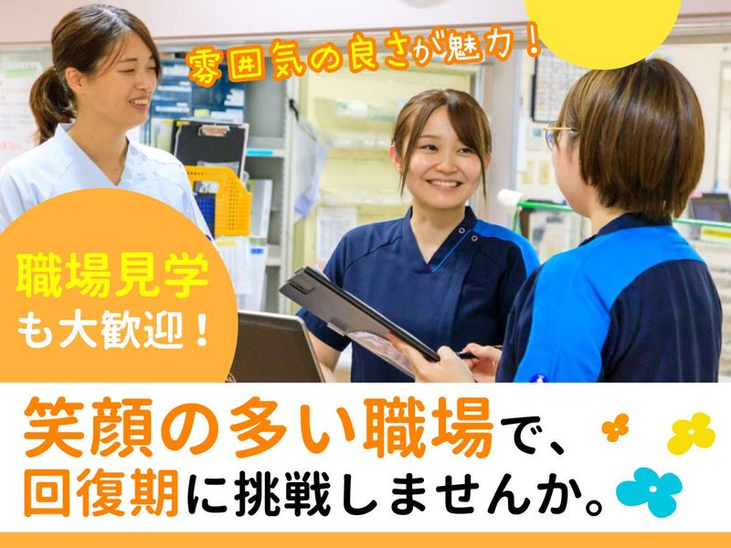 対象となる方 | 求めている人材 【必須】 ◆看護師の資格をお持ちの方 【いずれかに該当する方歓迎】 ◆雰囲気のいい職場で働きたい方 ◆回復期に挑戦してみたい方 ◆経験を活かし、キャリアアップしたい方 ◆ワークライフバランスを大切にしたい方 ◆患者さま一人ひとりに寄り添った看護に興味がある方 など、幅広く歓迎! ✅最近入社した先輩の前職 ・急性期の看護師(入社1年目・22歳) ・美容クリニックの看護師(回復期経験あり/入社1年目・26歳) 病棟経験だけでなく、訪問看護や美容クリニックなど他分野からの転職者も活躍中です♪ ✅キャリアアップについて 現在働いている2名の方が資格を取得し、 キャリアアップを行っています♪ ・認定看護師(認知症看護)1名 ・特定行為研修修了者 1名 |