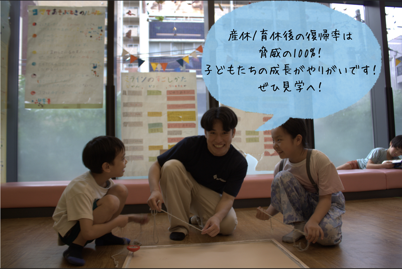 対象となる方 | 求めている人材 ◆必須資格(いずれか1つでOK) ・保育士、社会福祉士、教員免許(幼/小/中/高) ・養護教諭/栄養教諭 ・特別支援学校教諭 ・児童指導員任用資格など ◆こんな方にピッタリです! ・子どもの成長を間近で感じたい方 ・仕事とプライベート、どちらも大切にしたい方 ・安定した環境で、資格を活かして長く働きたい方 ・教育現場での経験を、別の形で活かしたい方 ー働きやすい環境づくり♪ー ワークライフバランスを考えた取り組みで、 今後も随時、働きやすい環境作りを目指します! |