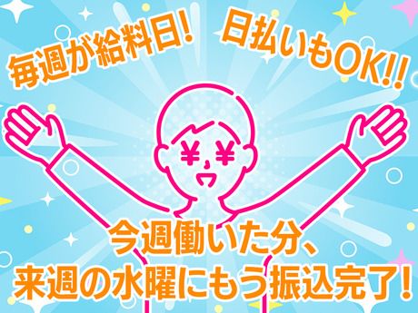 給与 | 日給12,000円~15,400円 給与 日給 1万2000円~1万5400円 (一律手当を含む) ┏┏┏┏ ━━━━━━━━━━━━ ■□ 原則週払い!日払いOK!□■ ━━━━━━━━━━━━━━━━ お財布がさみしくても安心! 【週払い制】【毎週水曜給料日】 なんと!日払いも可(当日入金) ━━━━━━━━━━━━━━━━ \\\||||/// 初回30日勤務で 【44万円以上をGET♪】 ///||||\\\ 日給1万2000円×初回30日 入社祝い金5万円 研修手当3.6万円 【給与例】 給与例 <月収例>※月22日勤務の場合 ■33万8800円 (日給1万5400円×22日) ■26万4000円 (日給1万2000円×22日) |