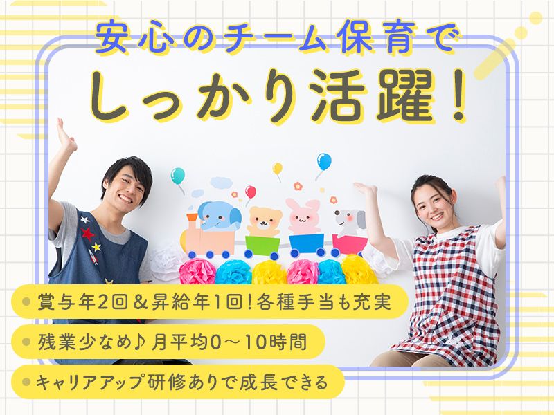 職種/仕事内容 | 仕事内容 〇●‥‥‥‥‥‥‥‥‥‥‥‥ 賞与3.3ヶ月分+各種手当あり ほぼ定時退社♪&土日休み中心 【認定こども園の保育士】 ‥‥‥‥‥‥‥‥‥‥‥‥●〇 ✨子ども一人ひとりに ゆとりを持って向き合える環境 ✨複数担任制だから 未経験の方も安心できる♪ ‥‥‥●働く魅力は?●‥‥‥ ✅賞与実績3.3ヶ月分+昇給あり ✅残業月0〜10hで私生活も充実 ✅担任は2〜4名体制で安心勤務 ✅外部研修でスキルアップ ✅産休育休の取得実績あり ‥‥‥●どんな仕事?●‥‥‥ 0〜5歳児クラスでの保育業務です。 「遊び・生活のお手伝い」から 「行事の準備・保護者対応」まで、 子どもたちの成長を支えます。 【 主な仕事内容 】 1 | 遊びや活動の見守り 2 | 食事や着替えなどのサポート 3 | 行事の企画・準備・実施 4 | 連絡帳や書類の記入・保護者対応 子どもたちの笑顔と 成長に寄り添える、 やりがいある仕事です! |