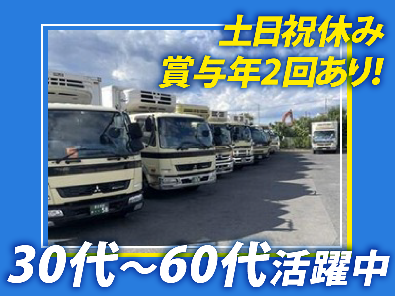 職種/仕事内容 | 仕事内容 【仕事内容】 冷凍食品を積み込み、4tトラックでの 配達・配送業務をお任せします。 お仕事の流れ 船橋車庫からトラックに乗り換えて出発(4:00) >> 大田区にて積み込み >> 都内:江東区・江戸川区周辺8~10件の配送 >> 船橋車庫へ 業務終了(13:00) 土日祝休みだから 友達や家族との時間も大切にできます! 長く働きたいあなたを全面的にサポート! 【この求人のポイント!】 <ワークライフバランスばっちり!> 残業ほぼなし! 家庭との時間、趣味に使う時間などを しっかり取れるコースになっています。 <幅広い年代の方が活躍中> ミドル活躍中! 30代から60代まで幅広い年代の方が活躍中 |