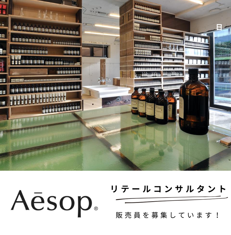 対象となる方 | 求めている人材 ✅ 必須条件 *週5日出勤可能な方 *土日出勤可能な方 ✅ こんな方大歓迎 *百貨店での販売経験者 *化粧品/コスメ販売経験者 *Aesopの商品が好きな方 *チームワークを大切にできる方 *物事の変化に柔軟に対応できる方 *主婦活躍中 *女性活躍中 *第二新卒歓迎 *学歴不問 |