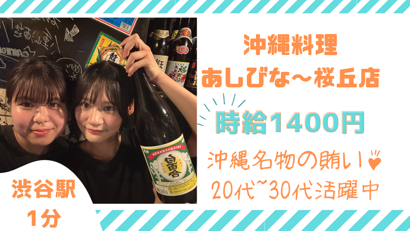 勤務地 | 沖縄料理 あしびな~桜丘店 150-0031東京都渋谷区桜丘町16-15カーサ渋谷B1階 |