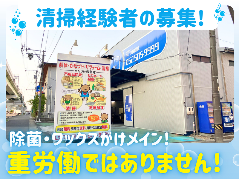 職種/仕事内容 | 仕事内容 新規立ち上げのオープニング募集! ─────────────── ◆清掃のお仕事経験が活かせる! ブランクがある方もOK! ◆日勤のみ×愛知県内の清掃 ◆直行直帰OK&社用車あり ◆給与は経験、年齢等を考慮します ●。○――――――――――――― 清掃事業をスタートするため 経験者を大募集中です! ―――――――――――――●。○ 当社は介護施設、葬儀場、医療施設 などの建築・リフォーム事業を 行っています。 今回新たに、これら各施設の 清掃事業をスタートさせるため スタッフを募集することになりました。 「過去に清掃経験はあるものの、 しばらく清掃の仕事からは離れていた…」 そんなブランクのある方も大歓迎! 新規事業のため、もしかしたら あなたの方が清掃に詳しいかも。 なので、清掃経験者の観点から 「どの洗剤・機材が使いやすい」 「こうしたら作業効率が上がる」 「何名体制が理想」などの意見もあれば どんどん教えてくださいね! ●。○――――――――――――― 働きやすい環境を整えています! ―――――――――――――●。○ 9:00~18:00の日勤のみで、 残業はあっても1日1hほどになるよう 取り組んでいきます! また、1ヶ月ごとのシフト制で 「この日はお休みしたい」という 要望も聞きますので、お気軽に ご相談くださいね! 他にも、昇給、賞与など福利厚生も 整えています。 また、経験者募集とはいえ、最初から ムリに沢山のことをお任せすることは ありません。 できる範囲で業務を一つひとつ 覚えていきながら、ゆっくり慣れて いってもらえれば大丈夫です! <仕事内容> ●。○――――――――――――― コツコツ、モクモクお掃除◎ 勤務先は愛知県内の各施設 ―――――――――――――●。○ 各施設共用部の清掃がメインです。 ■居室、洗面台、食堂などの床清掃、ワックス掛け ■手すり、ドアノブなどの除菌拭き など。 ✨重労働ではありません! ✨除菌・ワックスがけ中心 ✨エアコンクリーニングの経験や 庭木の剪定の経験も活かせます! ◎勤務先には社用車にて移動し、 直行・直帰も可能です。 ◎クリーニングにおける資格取得なども可能! 徐々に業務範囲を広げていきたいと考えています。 資格取得など費用は会社負担で受けられます。 スキルアップも可能です! ✅「いきなり正社員はハードルが高い から、まずはアルバイトとして入社して、 ゆくゆく正社員登用で安定勤務がしたい…」 そんな方のご相談も可能です! |
