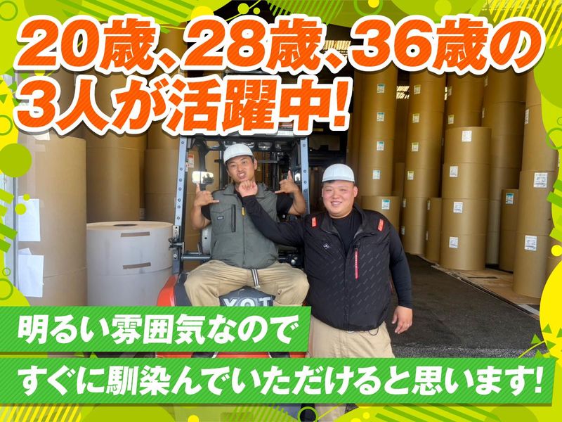 職種/仕事内容 | 仕事内容 ◆20代・30代の計3名が活躍中の倉庫 ◆助け合える環境で安心感バツグン ◆メリハリつけて楽しく作業 ◆残業なしで私生活も充実 ◆冷暖房完備の休憩室もご用意あり / 車のように座ってハンドル操作! 負担も不安も少なく 楽しい仲間と面白い仕事をしよう! \ 今回募集するのは… クランプリフトという種類の機械を運転し 荷物を倉庫から出し入れする フォークリフト作業員! 印刷する前のまっさらなロール紙を リフトで挟んでから トラックに乗せたり、逆に倉庫に戻したり、 倉庫の中で整理整とんしたり。 座って操作できるうえに 手で重たいものを運ぶこともないので 身体への負担が少なめです! ▼入社後まずは… 免許をお持ちでない方は リフト免許を取るために お勉強からスタート! 免許取得を目指しながら 先輩と1対1で 基本操作から覚えていき、 実践と練習をくりかえします。 ⇒最初はゆっくりでOK! ⇒丁寧に焦らず成長しましょう! ▼職場の雰囲気は… 高井田営業所の自慢は…【働きやすさ】! スタッフ同士思いやりながら、 楽しく面白く働けるところが魅力です! というのも、スタッフたちは 職場の人ではなく “良き仲間”のような関係性! 作業中は1人で黙々集中していますが、 「今のめっちゃ上手やった!」 といった声掛けや 「こうやったら効率いいよ~」 といったアドバイスやフォローが 当たり前にできています◎ 誰かが手いっぱいのときは 手が空いたスタッフ皆で助けるなど 思いやりあるメンバーなので、 安心して作業に取り組めます! ▼休憩中やひまな時は… お昼休憩や手が空いた時は 飲み物を飲みながら しょーもない話で笑いあったり、 ワイワイふざけあったり。 作業中は真剣そのものですが、 ほっと気を抜ける時間があるからこそ 無理なく楽しく続けられていますよ! ================== \他にも魅力たくさん/ ◎重たい荷物を運ぶなど力仕事なし! ◎残業ほとんどなし! ◎有給使って土日祝休みも可能! ⇒プライベートもしっかり楽しめます! ◎手が空いたり疲れたら こまめに休憩してもOK! ◎休憩室は冷暖房ばっちりで快適! ◎リフト免許の取得費用は 会社が全額お出しします(規定有)! ⇒取りに行く時間も勤務時間内で調整! 心も身体も疲れをため込まずに 毎日充実することができます! ================== ~社長から皆さんへ~ スタッフにはとにかく 「働きやすい!」「面白い!」と 思ってほしいので、 業務量が多い時はサポートに かけつけています。 できるだけスタッフと会話して 何でも相談しやすい環境作りを 心掛けているので、 気になることや相談は 遠慮なくしてくださいね! ================== |