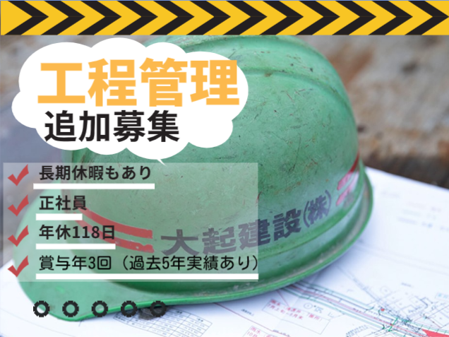 職種/仕事内容 | 仕事内容 \\求人のPOINT// ⏩未経験スタートの先輩も活躍中◎ ⏩意欲・人柄重視の採用! ⏩資格取得支援・手当アリ! ⏩高収入を目指せる☆ 工事が安全でスムーズに進むように、 進行の管理を担当します。 <具体的には…> ●土木施工現場でのスケジュール管理 ●工程管理 ●品質・安全管理 ●職人さん達への指示だし など 当社しか請け負えない専門性の 高い案件もあり、スキルが身に つけばその分稼げます! ✅社会インフラを支える仕事 └歩きやすい道をつくる、洪水を防ぐ、 など、多くの人の暮らしを安全かつ 快適にする役割を担っています。 ✅入社後は… └先輩社員から基本を教わり、少しずつ できることを増やしていきましょう。 入社半年後には、 外部セミナーなども受講します。 ✅気心知れたメンバーと働けます └現場作業を手がけるスタッフも当社と長年 付き合いのある顔なじみのスタッフなので、 スムーズに仕事を進められます。 ー・ー・ー・ー・ \\\ ここがポイント! /// ★手厚い資格取得サポート! ✅模擬試験の実施・サポート(過去問を使用) ✅講習会などの費用は会社負担 ✅試験日の前日などは業務量を調整 未経験スタートでも 「土木施工管理技士」 の取得を目指せます。 取得できれば資格手当も支給されます。 ★働きやすさも揃っています! ✅基本的に直行直帰OK ✅休憩時間も自由な雰囲気 ✅積極的な有給取得を奨励 基本的には直行直帰OK! また、有給休暇の取得も推奨しているので、 担当現場の管理が終わったら、 5日ほどの連休を取ってゆっくり休む人もいます。 ✅当社について 1969年創業の大起建設株式会社。 上下水道・河川・橋梁・舗装などの 土木工事を行ってきました。 推進工事や立坑工事や薬液注入を得意とし、 東京・埼玉を中心に多くの案件を手掛けています。 ★1つのプロジェクト先に常駐勤務となります |