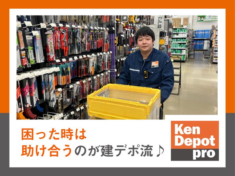 職種/仕事内容 | 仕事内容 【プロが選ぶ、会員制ショップ「建デポ」。】 「建デポ」は建材・工具等を売る会員制ショップです。 建築業を営むお客様を対象とし、 こだわりの資材や工具類を圧倒的な品揃えとプロ価格、 サービスで提供しています。 ー \仕事内容/ ●接客/売場のご案内や、商品のご説明、レジ、積み込みのお手伝いなど。 ※お客様が現場へ出る前の朝と、現場からお帰りになる夕方ごろから 接客業務がメインになります。 ※お客様から店舗に置いていない商品の注文を受けますので発注をお願いします。 ●売場管理/商品の在庫管理や棚作り ※日中はお客様が現場に出ていることが多いため、 その間に在庫整理をします。 ー 【建デポの接客の特徴】 お客様は、建築・建設業に携わるプロの方が多いため、 建築等の知識を接客に活かせることができます。 知識といっても・・・ 建築・土木業界にいたので建材や工具については 知っているが販売職は初めて。 販売などの経験はあるが、 プロ仕様の建材・工具って?という方も大歓迎 ー もっとお伝えすると、今働いている契約社員の方も、 「趣味がホームセンター巡り」 「家でよくDIYをする」 「前職で少し工具を扱っていた」 から始まった方が多いです! 建築・土木の豊富な経験や知識を持った 先輩スタッフが数多くいます。彼らから、 遠慮なくサポートを受けてください。 様々な知識を学んでいただく必要がありますが、 「そこが面白い!」というスタッフばかりです。 「建デポ」で、あえて契約社員の働き方を選ぶ 建デポで、契約社員として働くことを選んだ方々の 理由です。 ー #異業界・異職種からの転職も叶う #正社員として働く前にリハビリをしたい #自分の「好き」を活かせる場所を探している #何かを極めたい #極めたいことを応援してくれる会社で働きたい ー ★★★元電気工事士の方にインタビュー★★★ Q.なぜ建デポで技能契約社員という働き方を選んだのですか? A.電気工事士をしていましたが、仕事を辞めてバイトをしながら音楽をしていました。 「安定した働き方をしながら音楽も続けたい!」と思ったときに、建デポに出会いました。 Q.一番楽しいと思うポイントは何ですか? A.元々建築の仕事やDIYも好きだったので、 働きながら知識を身につけて成長できるというのが一番楽しいと実感しているポイントです! Q.キャリアアップを考えていますか? A.はい!近々、社員試験を受ける予定です。 ー ★★★元保育士の方にインタビュー★★★ Q.建デポに応募したきっかけは何ですか? A.趣味が「ホームセンター巡り」で、”会員制”というところにも興味を持ちました! 保育士も人と対峙する仕事なので、接客の仕事は初めてですが私にもできるかも?と思ったからです。 Q.未経験スタートで困ったことはありましたか? A.最初は全然わからないことばかりでしたが、商品知識や仕事の仕方など先輩がついてサポートしてくれました! ー 【契約社員から正社員・嘱託社員へキャリアアップ可!】 今回募集の方は契約社員からスタートいただきますが、 希望される方には、正社員、また、専門性を極めた プロフェッショナルへのキャリアアップが可能です。 正社員登用後は、更なるスキルを身につけ、 店舗運営・マネジメント職へ。 さらに将来は店長として売上・経費管理や店舗運営、 マネジメントを担当することも可能です。 ー 「建デポ」ならではキャリアアップ制度で、あなたを支援します。 \オススメpoint/ ★転居を伴う異動なし! ★東証プライム上場企業グループの安定性 ★賞与年2回、昇給有、有給休暇、キャリアアップ制度利用可 ★年間休日115日 ★インテリアからエクステリア、設備や施工に対する知識と応用力が身につく ★早番は14時40分には業務終了 ★遅番はお昼以降の出社有り! ★研修もご用意。建材・工具類に不慣れな方には使い方も指導します ★正社員や、嘱託社員へのキャリアアップが可能! 「健康経営優良法人2025」&「ホワイト企業」認定! 2025年3月10日、経済産業省と日本健康会議が実施する 「健康経営優良法人(中小規模法人部門)」に認定されました。 これは、従業員の皆さんの健康管理・健康増進を経営的な視点で考え、 戦略的に実践する「健康経営」に優れた企業を法人を認定する、というものです。 さらに、一般財団法人 日本次世代企業普及機構(通称:ホワイト財団)より 「次世代に残すべき素晴らしい企業」=「ホワイト企業」として、 最高位の「ホワイト企業認定PLATINUM」をいただいています。 名実ともに、安心して働ける会社です。 もう少し、「建デポ」とは 「建デポ」は、建設業を営む法人・ 個人事業主を対象にした会員制の総合建材卸のショップです。 建設業にかかわった方ならご存じかと思います。 その一方、一般の方には馴染みがないだけに、 「建デポ」の募集と聞いてもピンとこないのが残念なところです。 簡単にご紹介すると、プロ仕様のこだわりの資材や工具類を、 圧倒的な品揃えとプロ