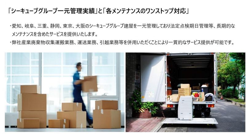 職種/仕事内容 | 仕事内容 \\ 求人のポイント // ✅年間休日125日+計画有休5日で 年130日以上お休みあり! ✅賞与年3回支給!前年度実績6.1ヶ月分! ✅残業少なめ! 水曜日はノー残業デー実施中! ✅未経験OK!先輩社員が丁寧にサポート! ✅シーキューブグループの安定基盤! ◆・◆・◆・◆・◆・◆・◆・◆・◆・◆・◆・◆・◆ 【仕事内容】 建物やオフィスが快適に使えるように サポートするお仕事です。 チームで協力しながら様々な現場で 活躍していただきます。 【具体的な仕事内容】 ✅オフィスや建物の利便性を整える作業 ✅設備が安全に使えるようメンテナンス ✅引越しや什器等の運搬のサポート 【業務について】 当社はシーキューブグループの一員として グループ会社の業務を総合的に支える 役割を担っています。 多岐にわたる事業を展開しているため 様々なエリアの現場に行く機会があり ドライブ感覚で移動を楽しんだり 現地のグルメを味わったりできるのも 魅力の一つです。 ◆・◆・◆・◆・◆・◆・◆・◆・◆・◆・◆・◆・◆ ⭐先輩が丁寧に教えます! ━━━━━━━━━━━━━━━━━━ 入社後はまず先輩について現場を回る ところから始めます。 簡単な作業から任せていくので、 仕事の流れやお客様との接し方などを 覚えていってください。 先輩が丁寧に教えるので 安心して学べる環境です。 徐々にできることを増やしながら あなたのペースで成長していけます。 人事考課制度もあり、「ガンバリ」を しっかり評価します! ⭐働きやすい職場環境! ━━━━━━━━━━━━━━━━━━ 上下関係が厳しくない社風で、 上司や先輩と気軽に相談や雑談ができる 風通しの良い職場です◎ 社内イベントも充実! また、様々な事業を展開しているため 万が一仕事内容が合わなかった場合でも 社内の別事業への異動が可能です。 ⭐ワークライフバランスを大切にできる ━━━━━━━━━━━━━━━━━━ 完全週休2日で年間休日125日。 会社が定める計画有休5日を加えると 年130日以上のお休みが取れます。 通常の有給休暇も取得しやすい環境なので 家族や友人との時間を大切にしたり 自分だけの趣味を思う存分楽しんだりと プライベートの時間も充実させられます! ⭐安定企業で長期キャリア! ━━━━━━━━━━━━━━━━━━ 当社は大手通信キャリアから受注する 通信インフラ整備の工事を中心に 事業展開するシーキューブ株式会社の グループ会社です。 生活に必要不可欠な通信インフラに 携わる企業グループの一員として、 景気に左右されにくい安定基盤を 持っていることが大きな魅力です。 将来を見据えて安定した環境で 長期キャリアを築きたい方に ぴったりの職場です。 ⭐当社について ━━━━━━━━━━━━━━━━━━ シーキューブ株式会社の完全子会社 としてリース・運輸・産廃収集運搬・ 警備・ビル総合メンテナンスなど 様々な事業を展開しています。 長年培ってきた豊富な経験と高い技術力 により、お客様の立場に立った きめ細やかなサービスを提供することを モットーに歩んできました。 そんな当社の将来を担っていただく フレッシュな人材を募集しています! 経験やスキルは必要ありません。 あなたのゼロからのチャレンジを お待ちしています! |